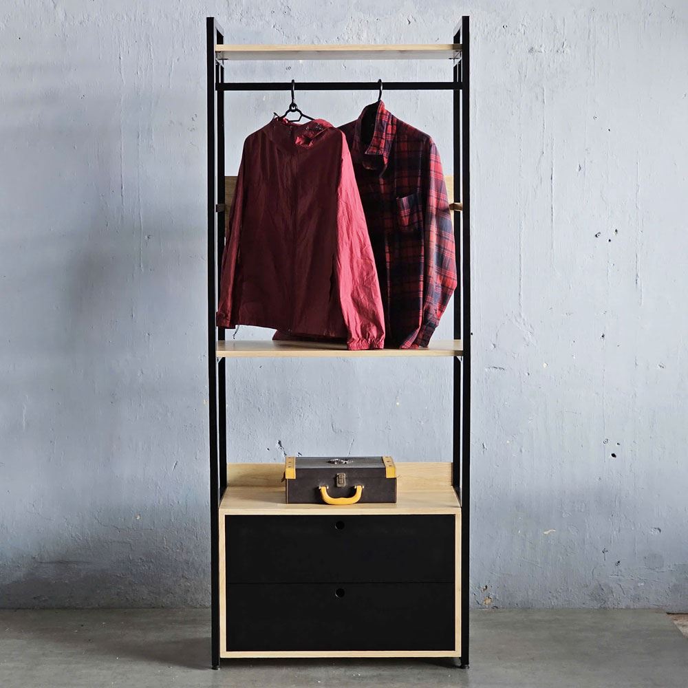 Kệ quần áo VEGA 3 tầng kết hợp hộc tủ 80x45x200(cm) KQA68042 được thiết kế đơn giản không cửa mở theo phong cách tối giản với chất liệu gỗ cao su tiêu chuẩn AA ưu việt dày 17mm sơn Pu hoàn thiện kết hợp khung sắt hộp gia công sơn tĩnh điện. Thiết kế gồm khung treo đồ đơn giản kết hợp các tầng cùng 2 hộc kéo dưới chân giúp không gian điện tích được sử dụng tối đa. Bạn có thể dễ dàng kết hợp các kệ trong cùng hệ VEGA để tạo thành các kệ lớn hơn, tiện lợi trong việc di chuyển, lắp đặt.