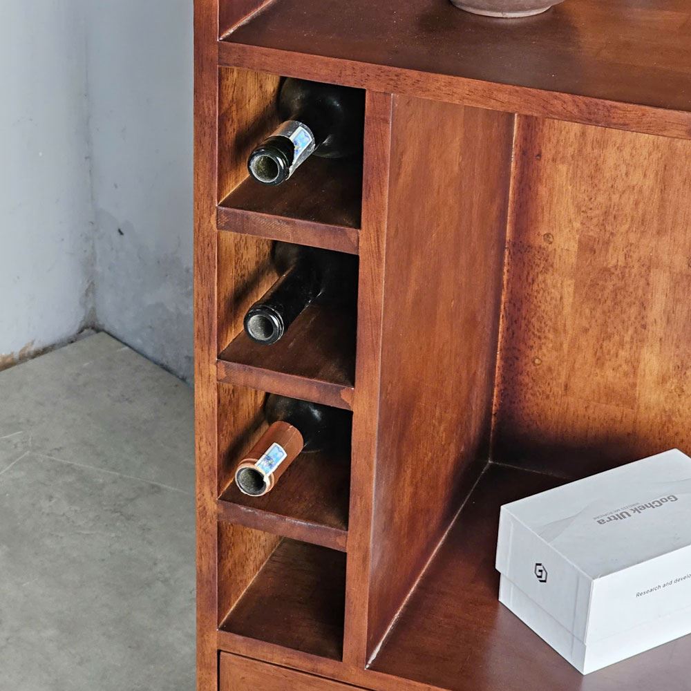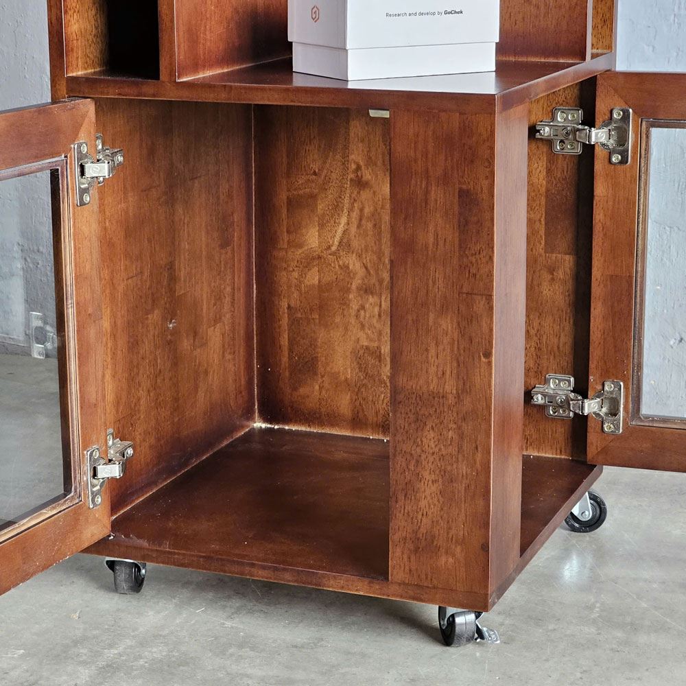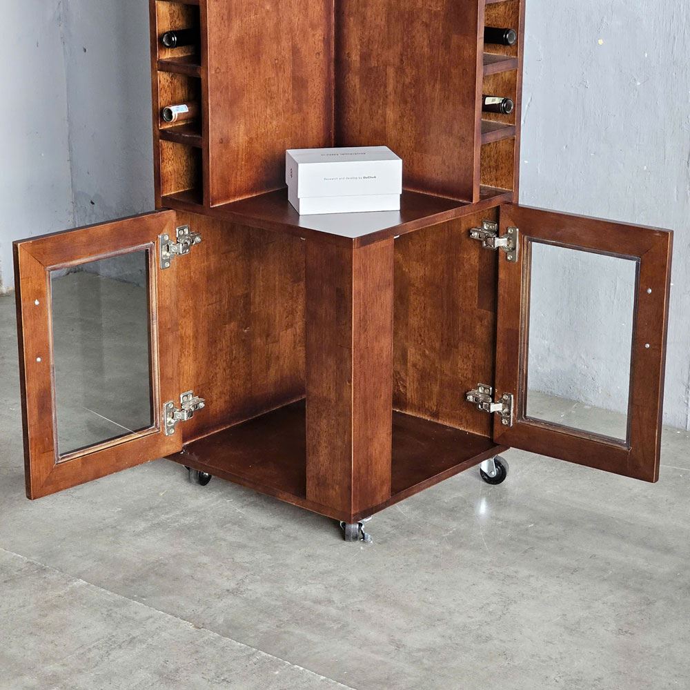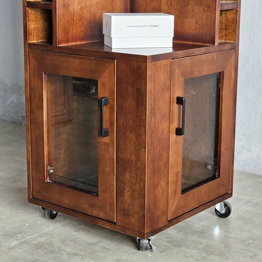 Dưới cùng là ngăn tủ cửa kính với hai cánh cửa kính trong suốt như mở ra một thế giới riêng, nơi những chai rượu quý được “trình diễn” một cách đầy kiêu hãnh. Thiết kế này không chỉ tăng tính thẩm mỹ cho tủ mà còn giúp bạn dễ dàng quan sát và lựa chọn loại rượu mình yêu thích. Thiết kế bánh xe giúp bạn dễ dàng di chuyển tủ đến bất kỳ vị trí nào trong phòng. Khi cần cố định, bạn chỉ cần khóa bánh xe, tủ sẽ đứng vững chắc. Sự linh hoạt này giúp bạn dễ dàng thay đổi bố cục nội thất theo sở thích hoặc nhu cầu sử dụng.
