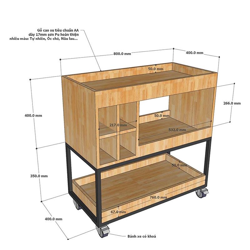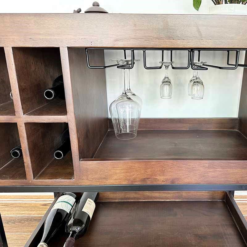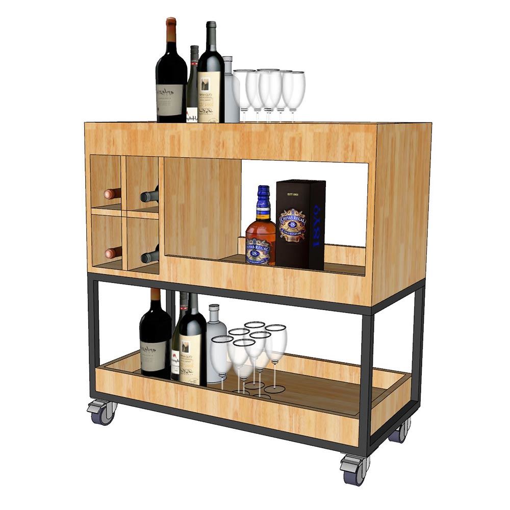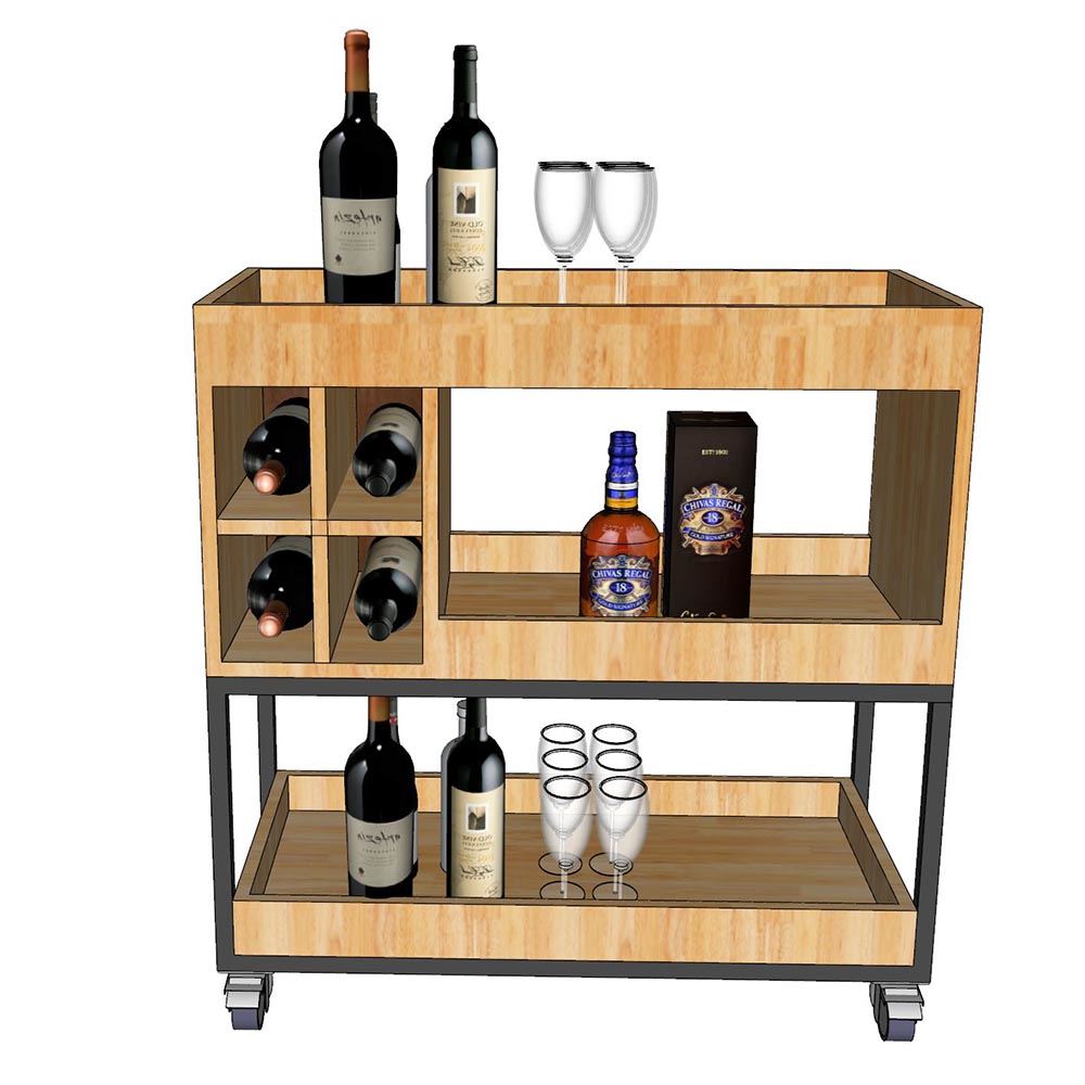 Kệ Rượu đi động gỗ tự nhiên kết hợp khung sắt KR68002 với thiết kế đơn giản và kích thước vừa phải nhỏ gọn phù hợp với mọi không gian phòng khách hay nhà bếp, Mẫu kệ sử dụng chất liệu gỗ cao su tự nhiên tiêu chuẩn AA dày 17mm sơn PU hoàn thiện với nhiều màu sắc lựa chọn. Kết hợp với khung sắt sơn đen làm điểm nhấn. Thiết kế tiện lợi với 4 khay để rượu vang và các tầng để ly, hay đồ ăn đều được .