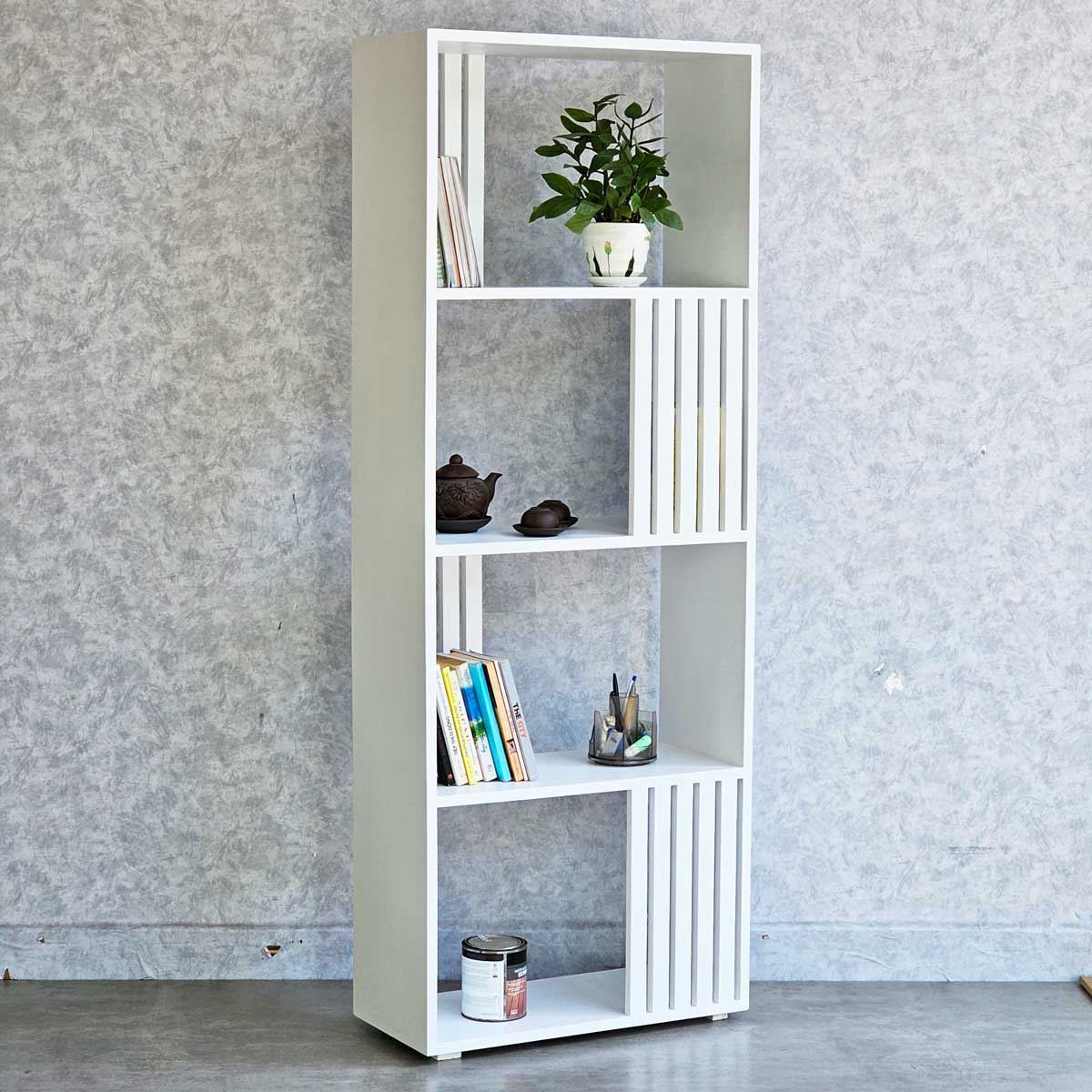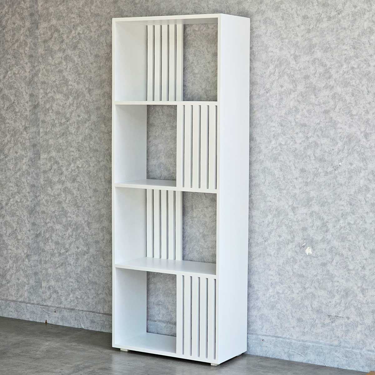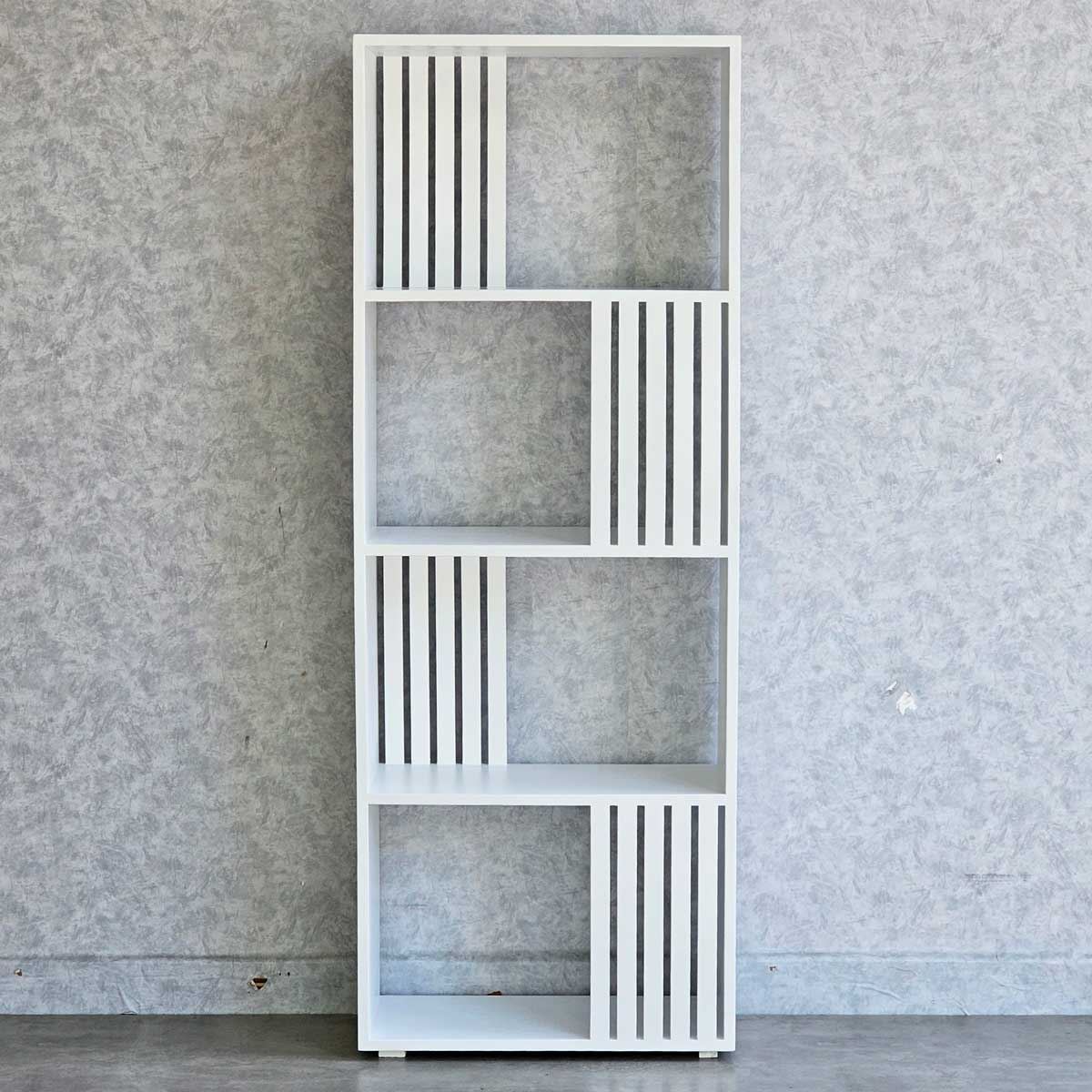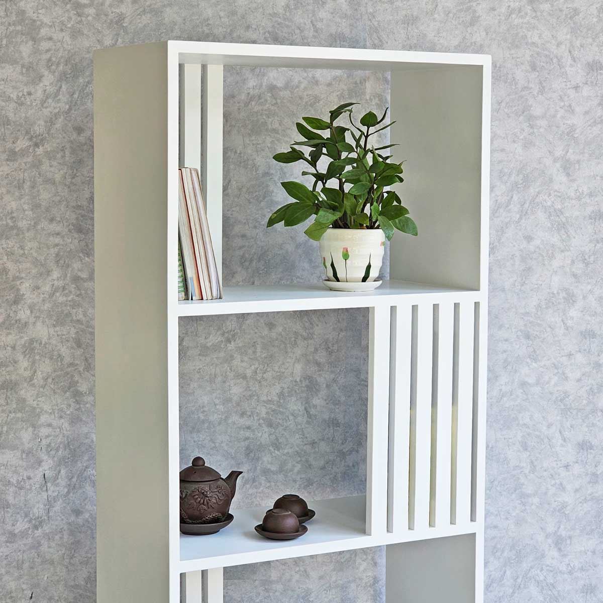 Mặt sau của kệ sách được làm từ các thanh gỗ dọc, tạo ra một phong cách hiện đại và độc đáo. Điều này không chỉ làm cho kệ sách trở nên hấp dẫn từ phía trước mà còn tạo ra một góc nhìn thú vị từ phía sau.