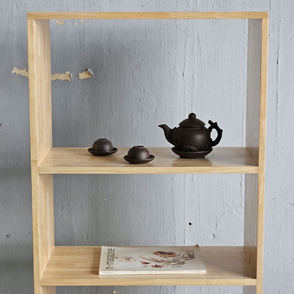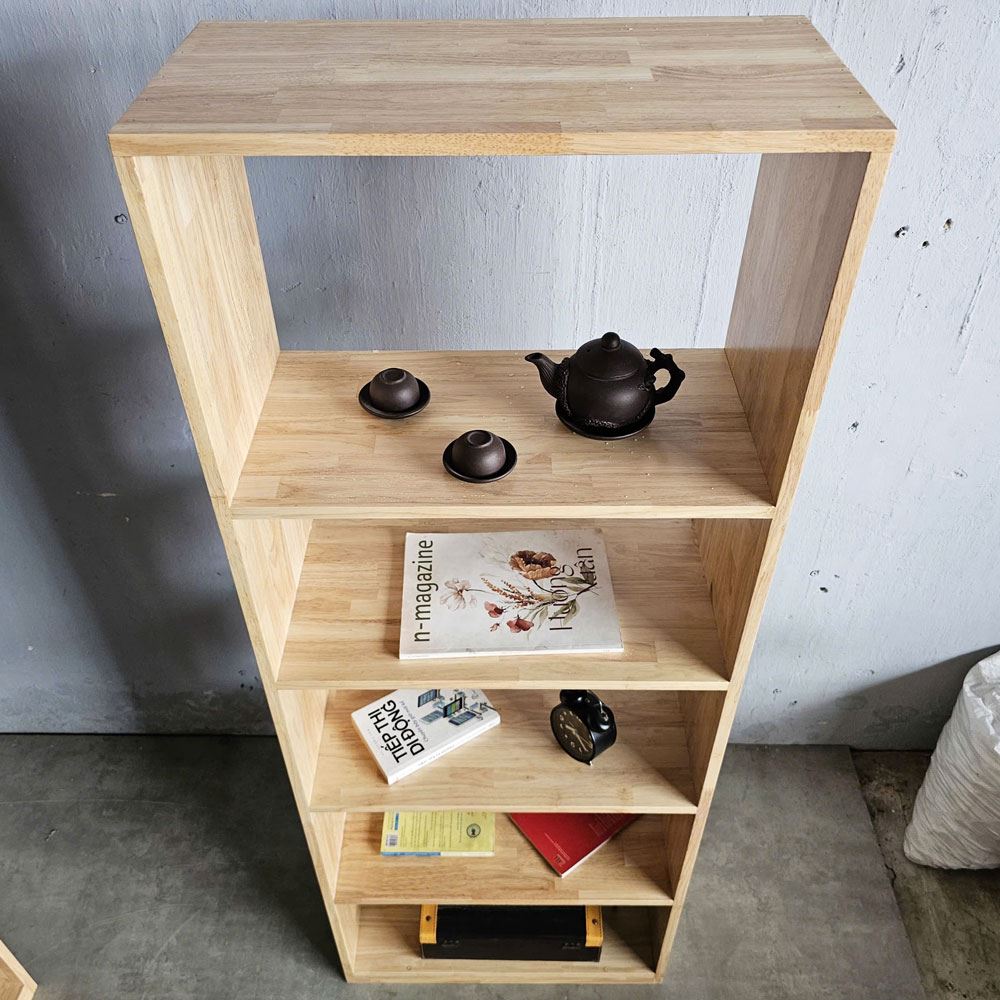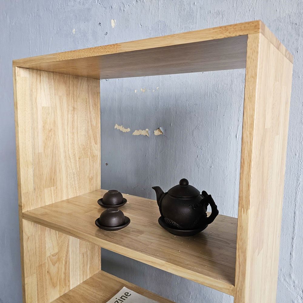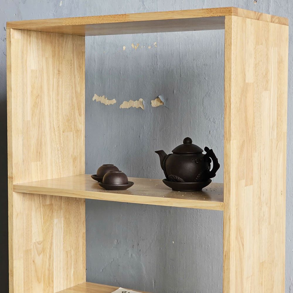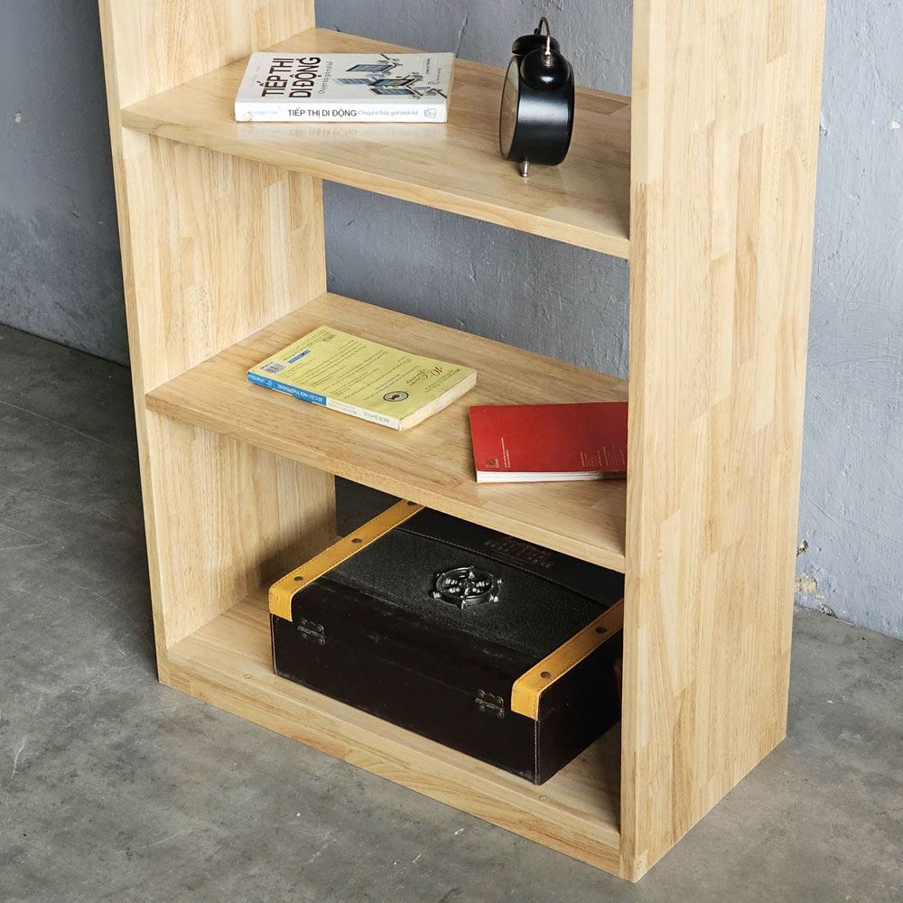 Được làm hoàn toàn bằng gỗ cao su AA, một gỗ cứng và có độ dày 17mm giúp kệ sách chứa được những cuốn sách nặng