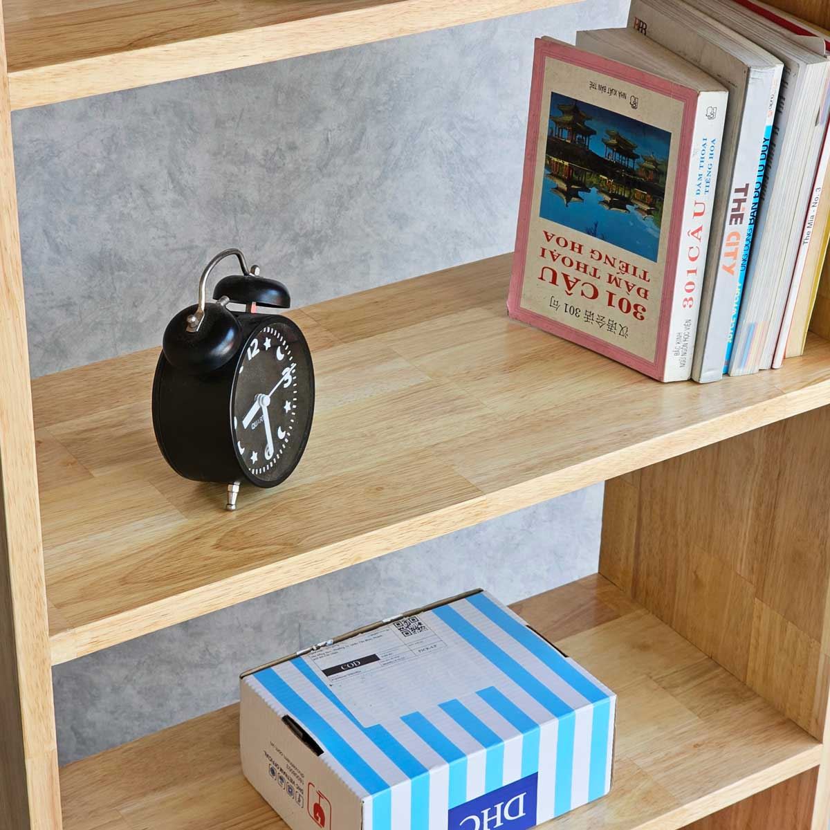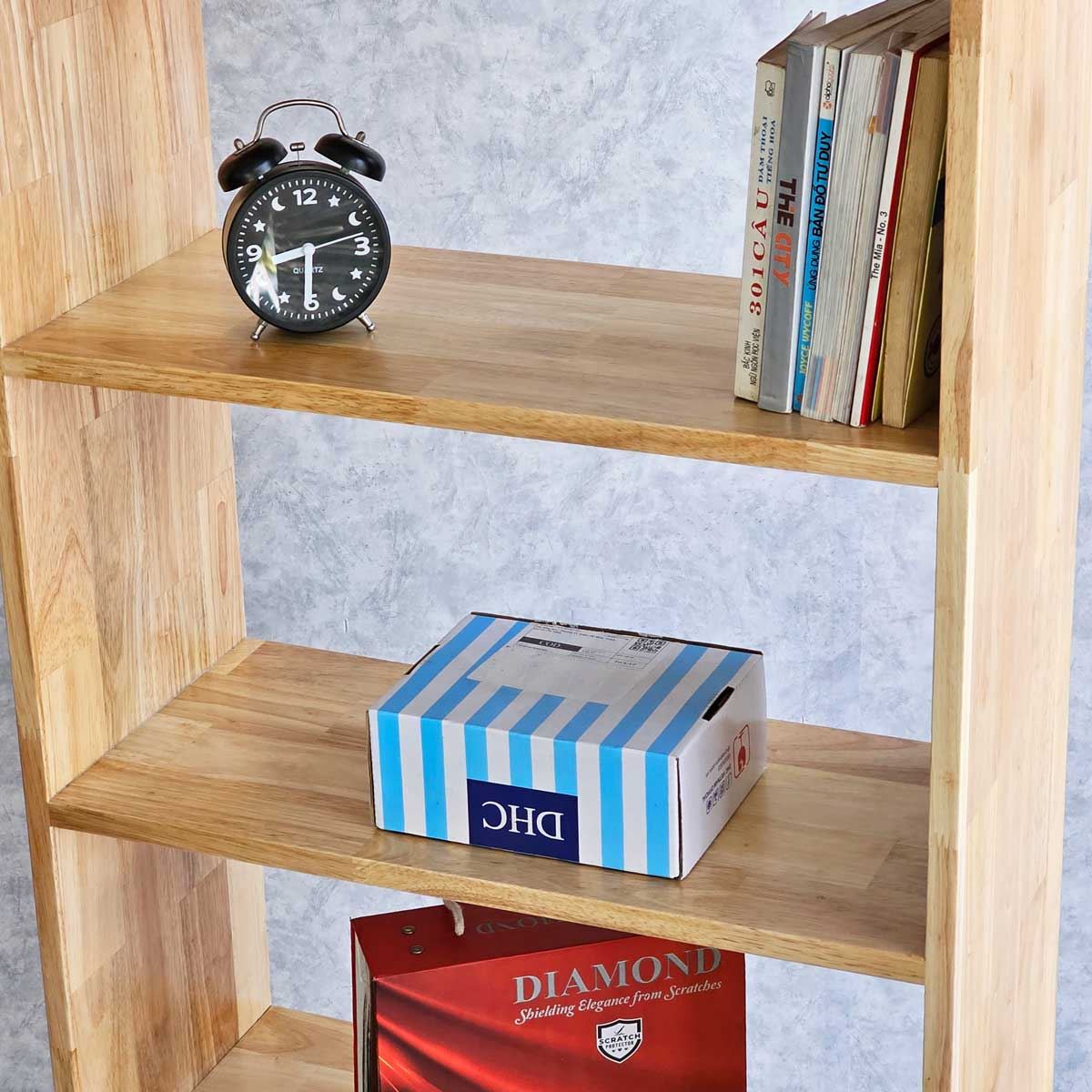 Kệ sách được làm từ gỗ cao su AA, chuẩn xuất khẩu, đã xử lý chà nhám và phủ chống thấm, đảm bảo độ bền bỉ
