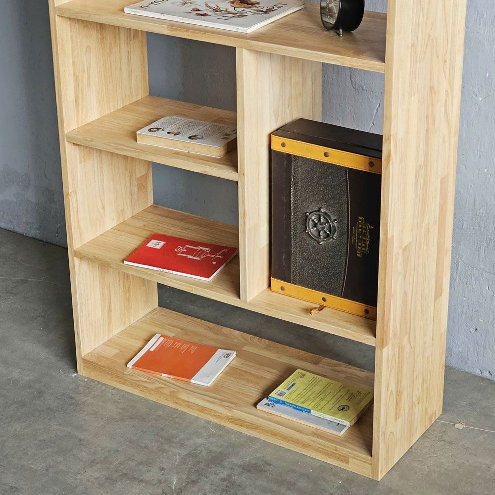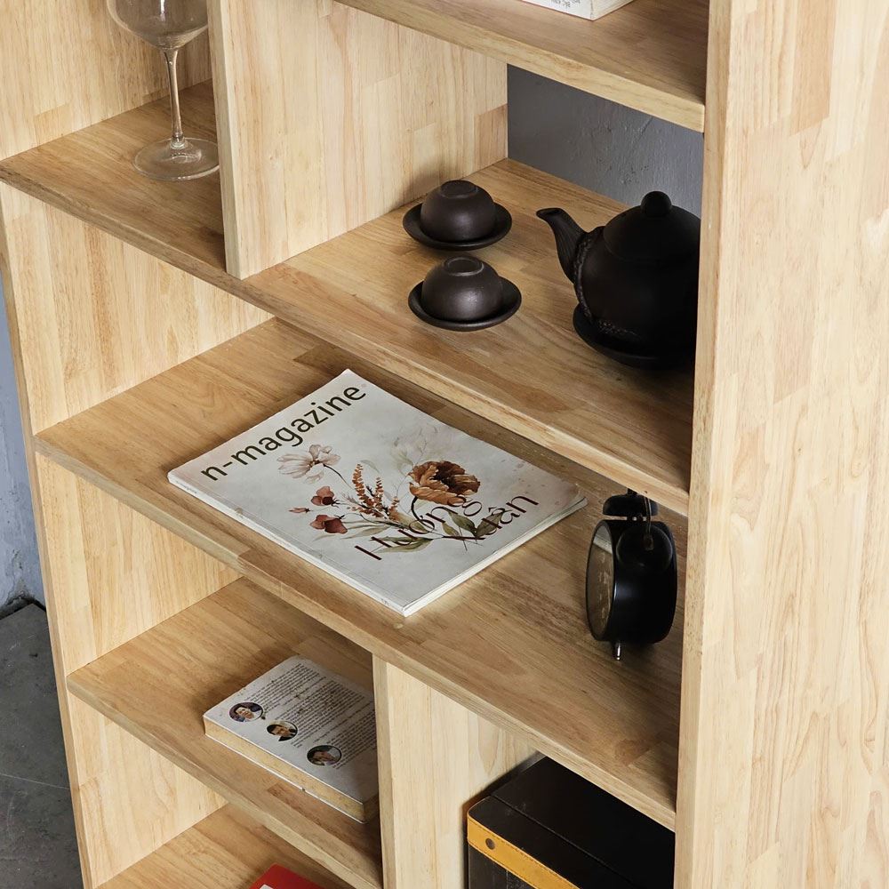 Chất liệu gỗ cao su AA được sử dụng để sản xuất kệ sách đảm bảo độ bền và độ cứng cao. Bề mặt gỗ được xử lý kỹ lưỡng, chà nhám mịn và phủ lớp sơn PU chống thấm nước, giúp bảo vệ kệ sách khỏi tác động của môi trường và tăng tuổi thọ sản phẩm.