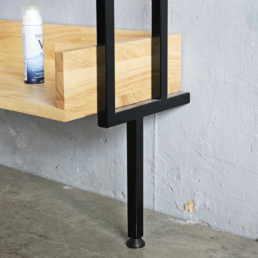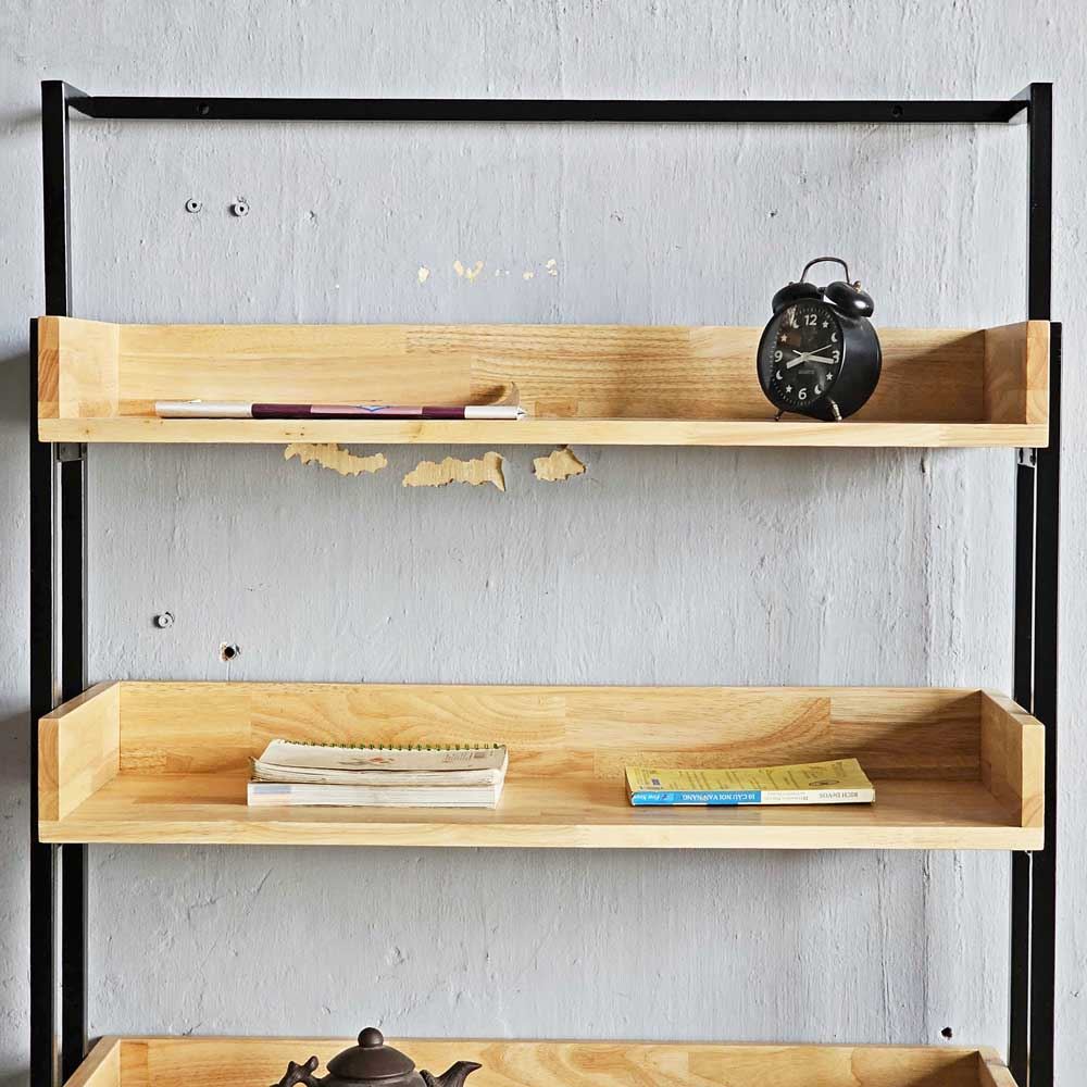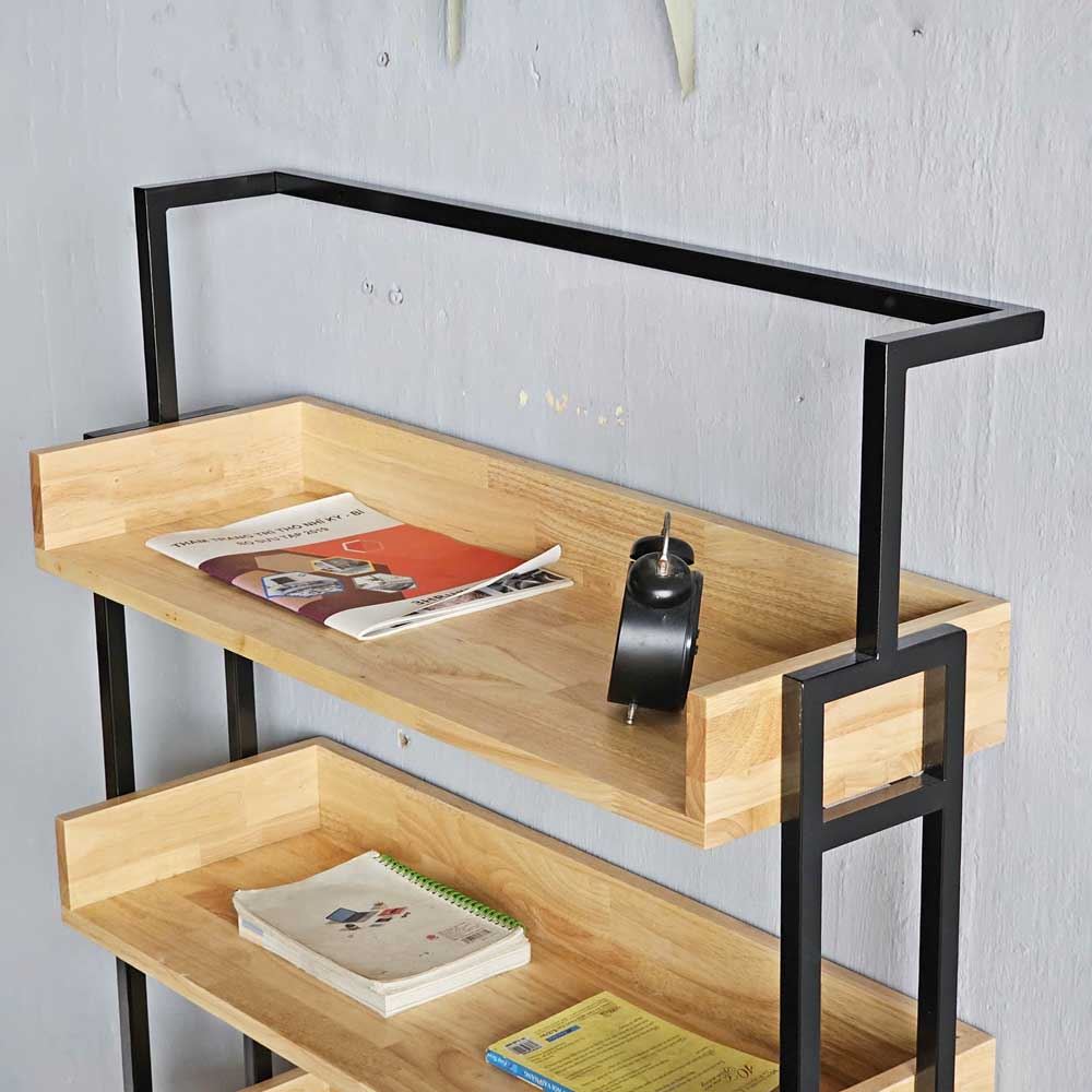 Hệ khung sắt chắc chắn kết hợp với các tầng kệ mở tạo nên một tổng thể hài hòa, vừa hiện đại vừa tiện dụng. Các đợt kệ có vách ngăn bao quanh mỗi tầng kệ giúp ngăn ngừa đồ vật bị rơi vãi, đồng thời tạo nên một không gian ngăn nắp, gọn gàng. Đặc biệt, với 6 điểm cố định vào tường, kệ áp tường đảm bảo sự ổn định tối đa, ngay cả khi chịu tác động mạnh. Chất liệu gỗ cao su AA, chuẩn xuất khẩu, đã xử lý chà nhám và chống thấm.