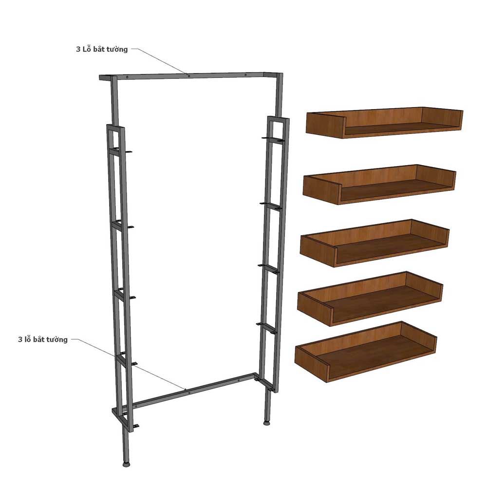 Khung sắt chắc chắn kết hợp với các tầng kệ mở rộng rãi, tạo nên một không gian lưu trữ linh hoạt và tiện dụng