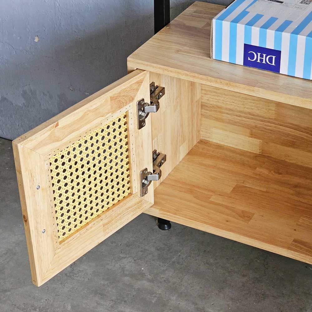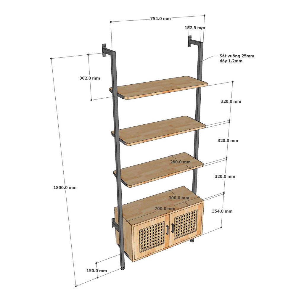 Với thiết kế thông minh, kệ áp tường KS68270 là sự kết hợp hài hòa giữa chất liệu gỗ cao su tự nhiên và khung sắt chắc chắn, sản phẩm này không chỉ đáp ứng nhu cầu lưu trữ mà còn trở thành điểm nhấn độc đáo cho mọi không gian sống. Điểm đặc biệt của kệ áp tường KS68270 chính là ngăn tủ cửa lưới mây mắt cáo. Chi tiết này không chỉ mang đến vẻ đẹp tinh tế, gợi cảm hứng cho phong cách nội thất hiện đại mà còn tạo nên một không gian kín đáo, lý tưởng để cất giữ những vật dụng cá nhân.