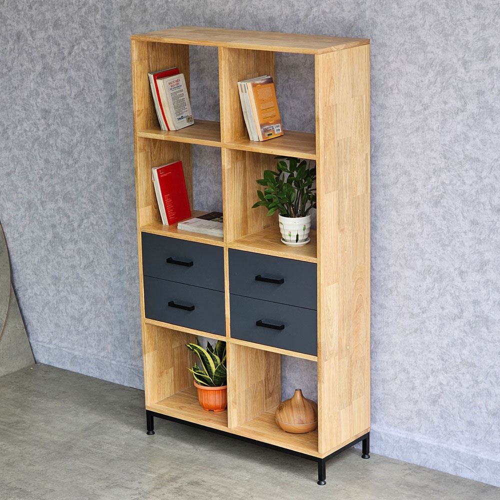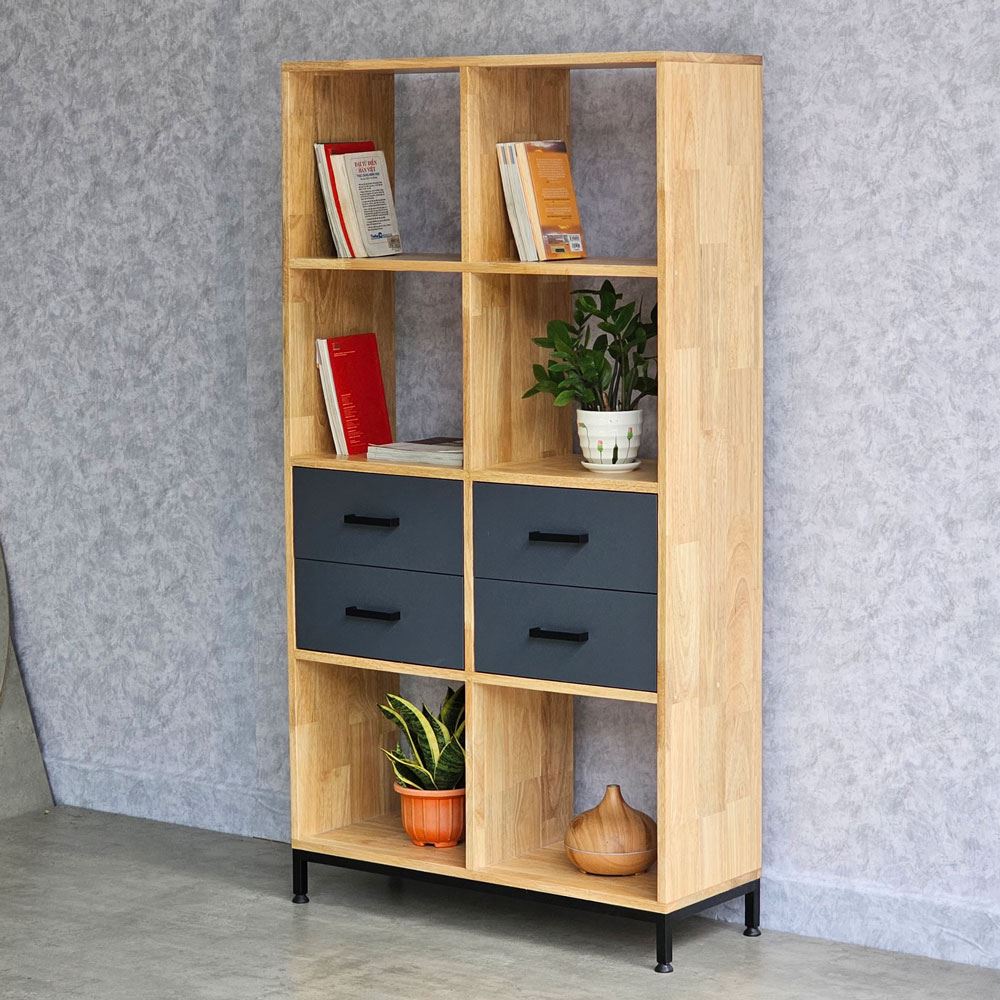Kệ sách có hộc tủ gỗ cao su chân sắt KS68160 thiết kế đơn giản với chất liệu gỗ cao su tiêu chuẩn AA dày 17mm sơn PU hoàn thiện cực đẹp với 5 màu sắc lựa chọn, kích thước nhỏ nhắn phù hợp với mọi không gian và đặc biệt tiện lợi với các không gian nhỏ. Thiết kế phân tầng và 4 ngăn kéo tăng khă năng lưu trữ rất tiện lợi. Mẫu kệ thích hợp để phòng khách, phòng ngủ hoặc không gian văn phòng đều được hoặc có thể để trong nhà bếp đều được.
