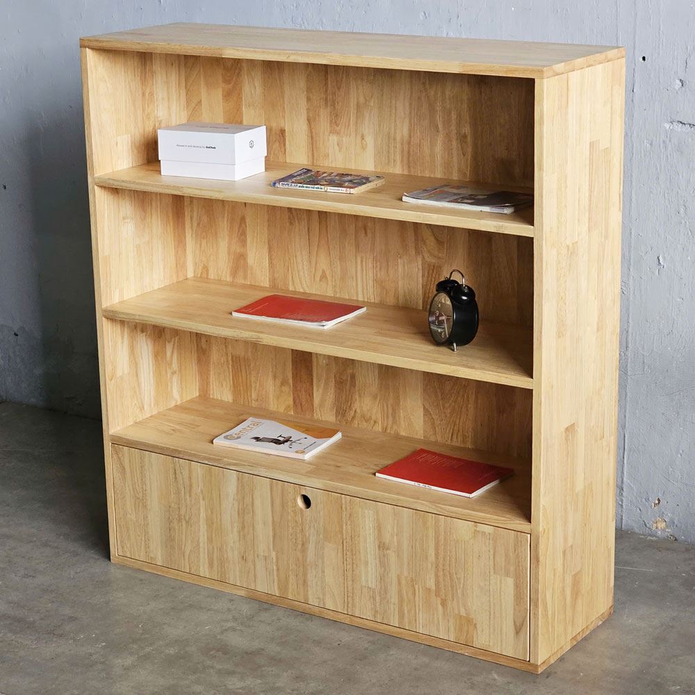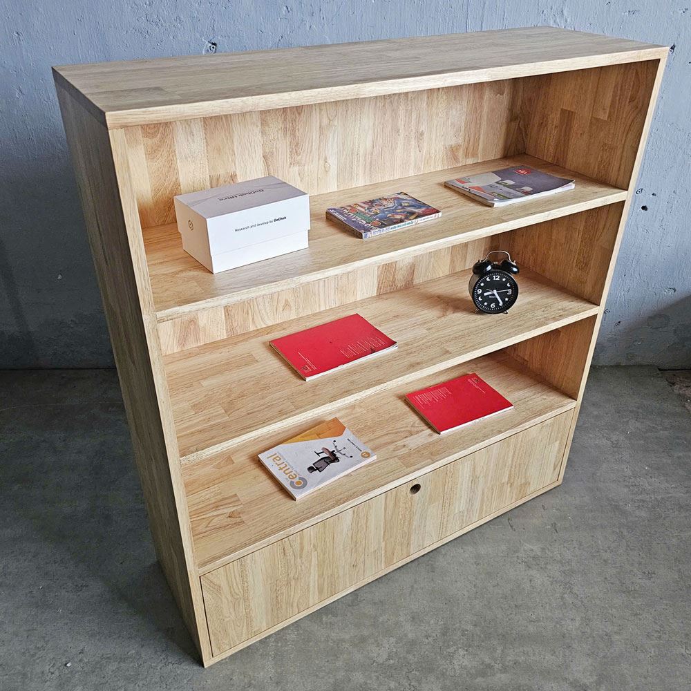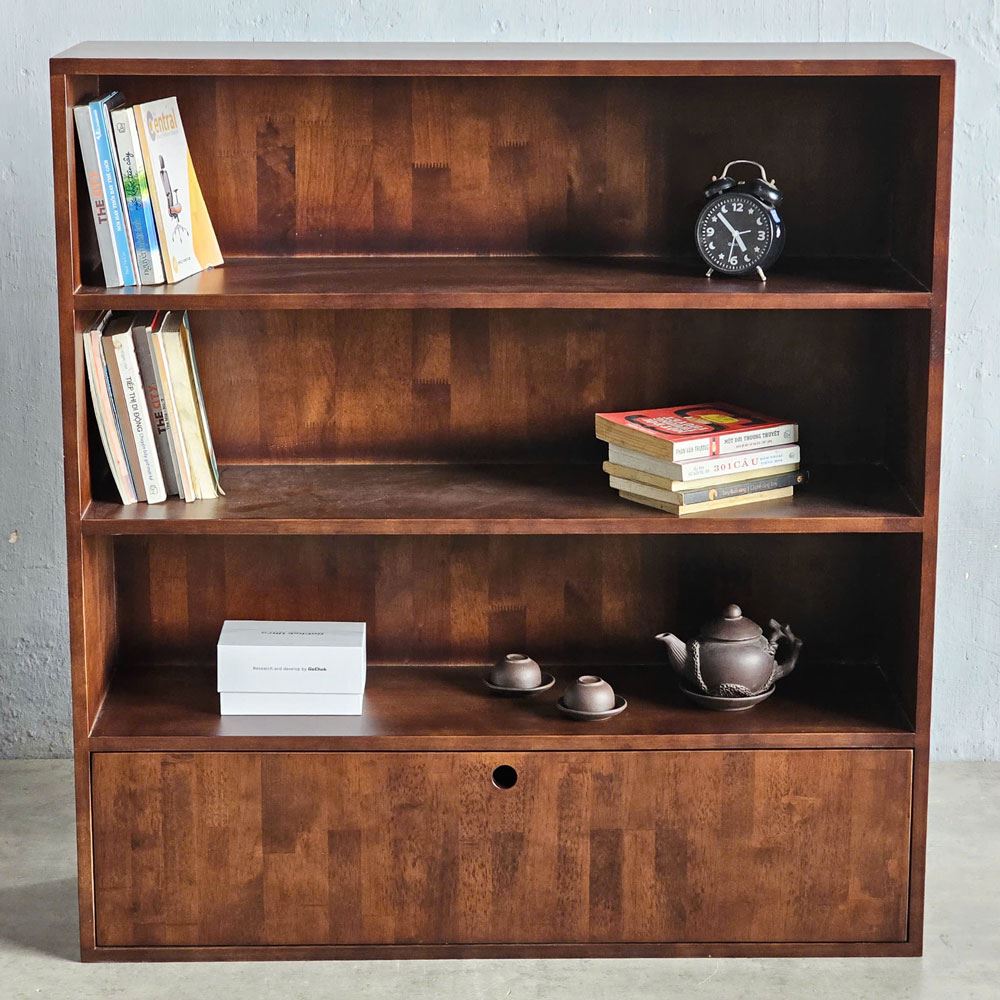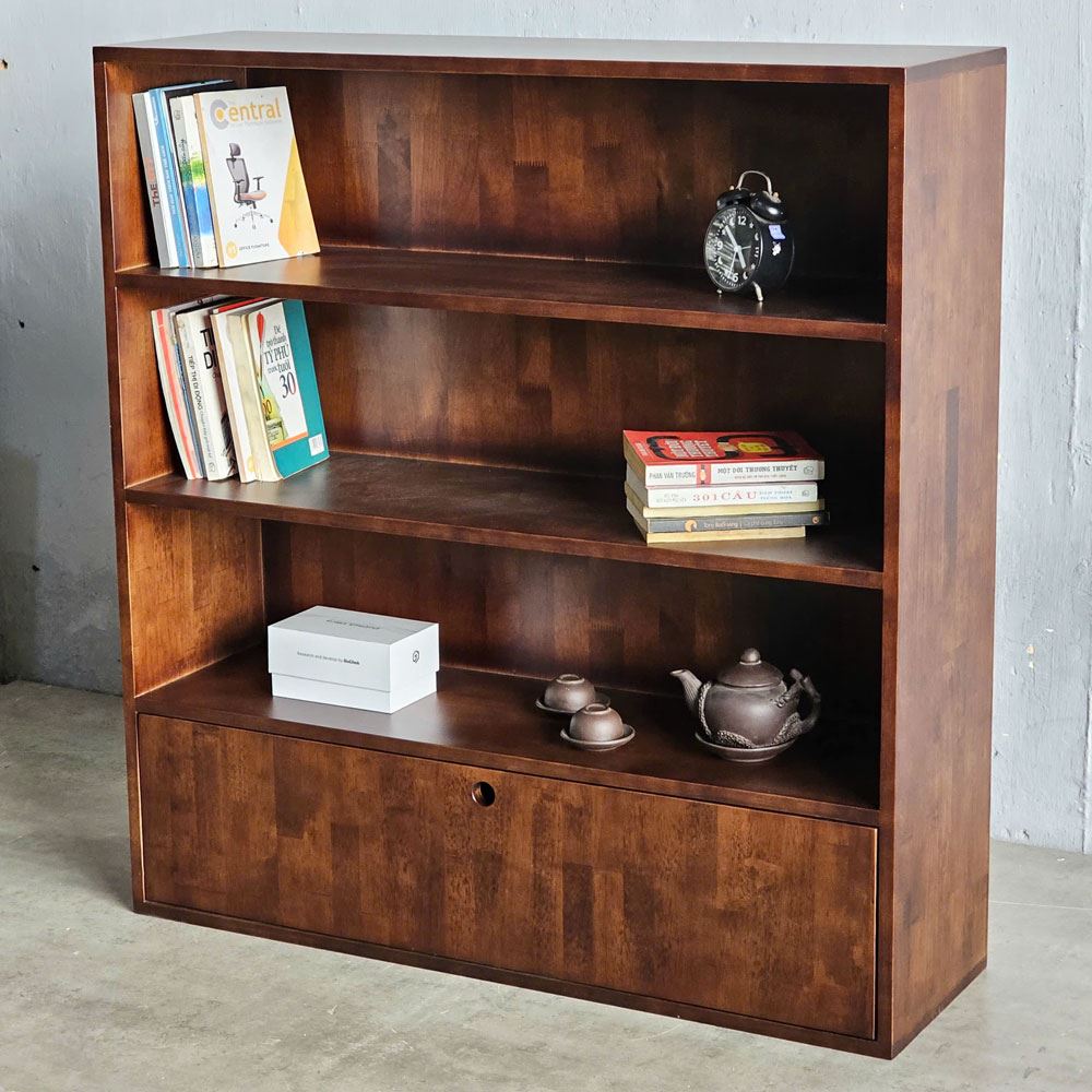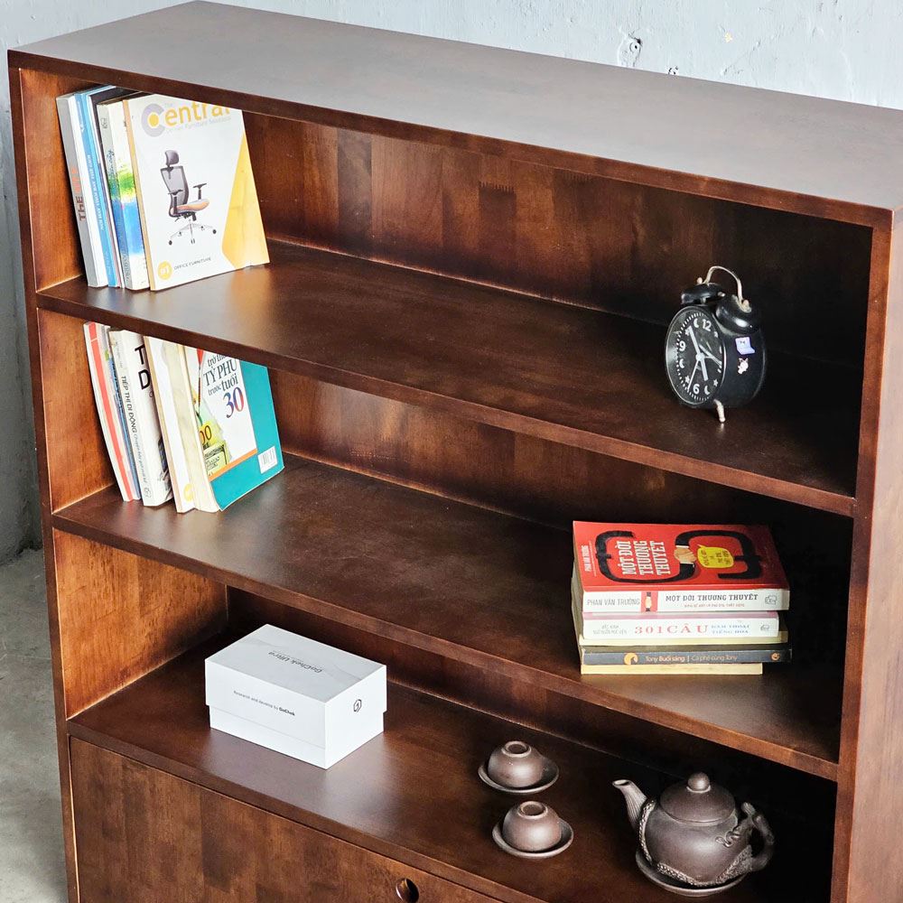 Kệ sách có 3 tầng kệ mở phía trên với chiều dài lên tới 1 mét, giúp bạn để được rất nhiều sách
