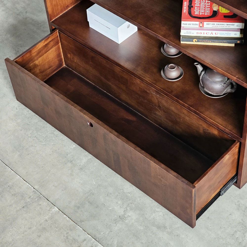 Với thiết kế đơn giản, hiện đại, kệ sách này không chỉ giúp bạn sắp xếp sách vở, tài liệu gọn gàng. Ngăn kéo rộng rãi phía dưới không chỉ là nơi để bạn cất giữ những cuốn sách ít sử dụng, các tài liệu quan trọng, mà còn là một không gian riêng tư để bạn sắp xếp những vật dụng cá nhân một cách gọn gàng, ngăn nắp. Chi tiết khoét lỗ tròn tinh tế thay thế cho tay nắm truyền thống không chỉ mang đến vẻ đẹp độc đáo mà còn thể hiện sự tinh tế trong từng đường nét thiết kế.