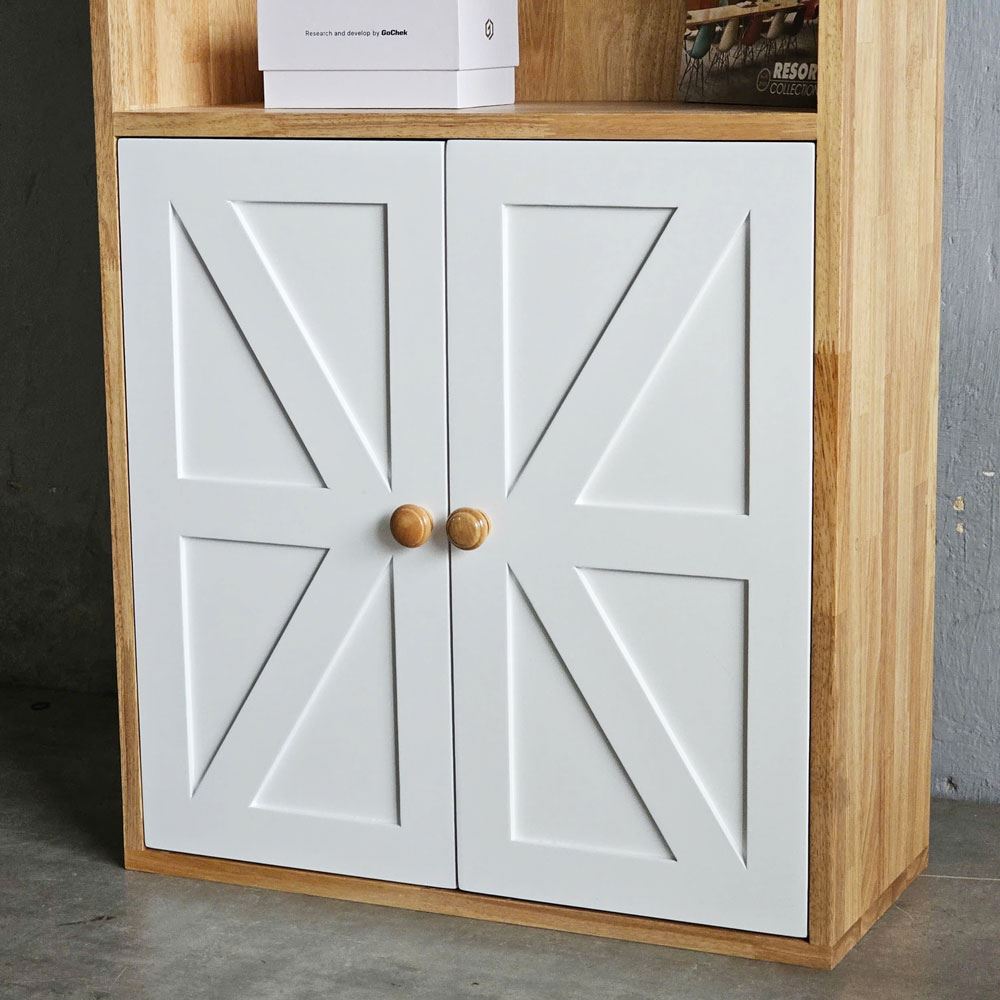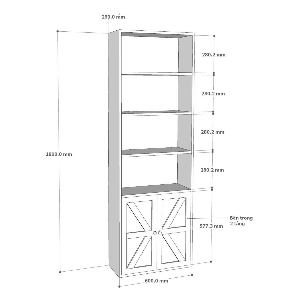 Với thiết kế tinh tế, kết hợp hài hòa giữa những đường nét mộc mạc và sự hiện đại, chiếc kệ sách KS68290 không chỉ là nơi lưu trữ sách báo mà còn là điểm nhấn độc đáo cho không gian sống của bạn. Cánh cửa tủ với họa tiết chữ X đặc trưng của phong cách Farmhouse tạo nên điểm nhấn ấn tượng. Bốn ngăn kệ mở phía trên không chỉ giúp bạn sắp xếp sách báo một cách gọn gàng mà còn tạo cơ hội để bạn trưng bày những cuốn sách yêu thích, những món đồ trang trí nhỏ xinh, biến không gian trở nên sinh động và thú vị hơn.