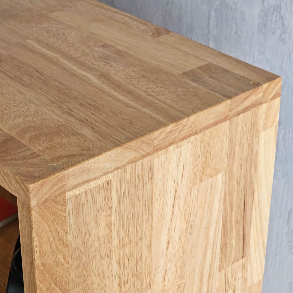 Kệ được làm hoàn toàn bằng chất liệu gỗ cao su AA được tuyển chọn kỹ lưỡng, bề mặt gỗ được chà nhám mịn màng và được phủ PU chống thấm nước, mang lại cảm giác thoải mái khi chạm vào, cũng như đảm bảo độ bền bỉ và bền màu cho gỗ. Gỗ cao su là loại gỗ tự nhiên có vân gỗ đẹp mắt, màu sắc tươi sáng, giúp tạo nên một vẻ đẹp mộc mạc và sang trọng.
