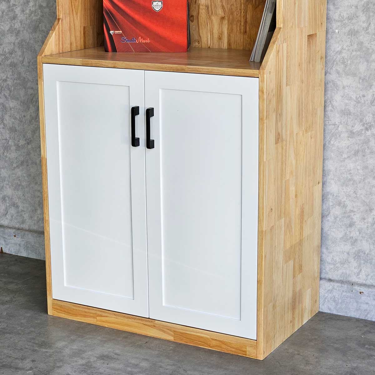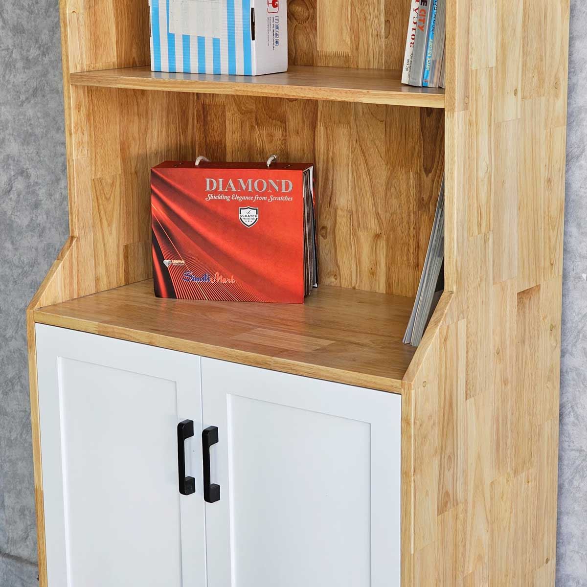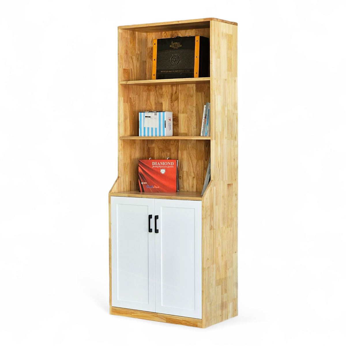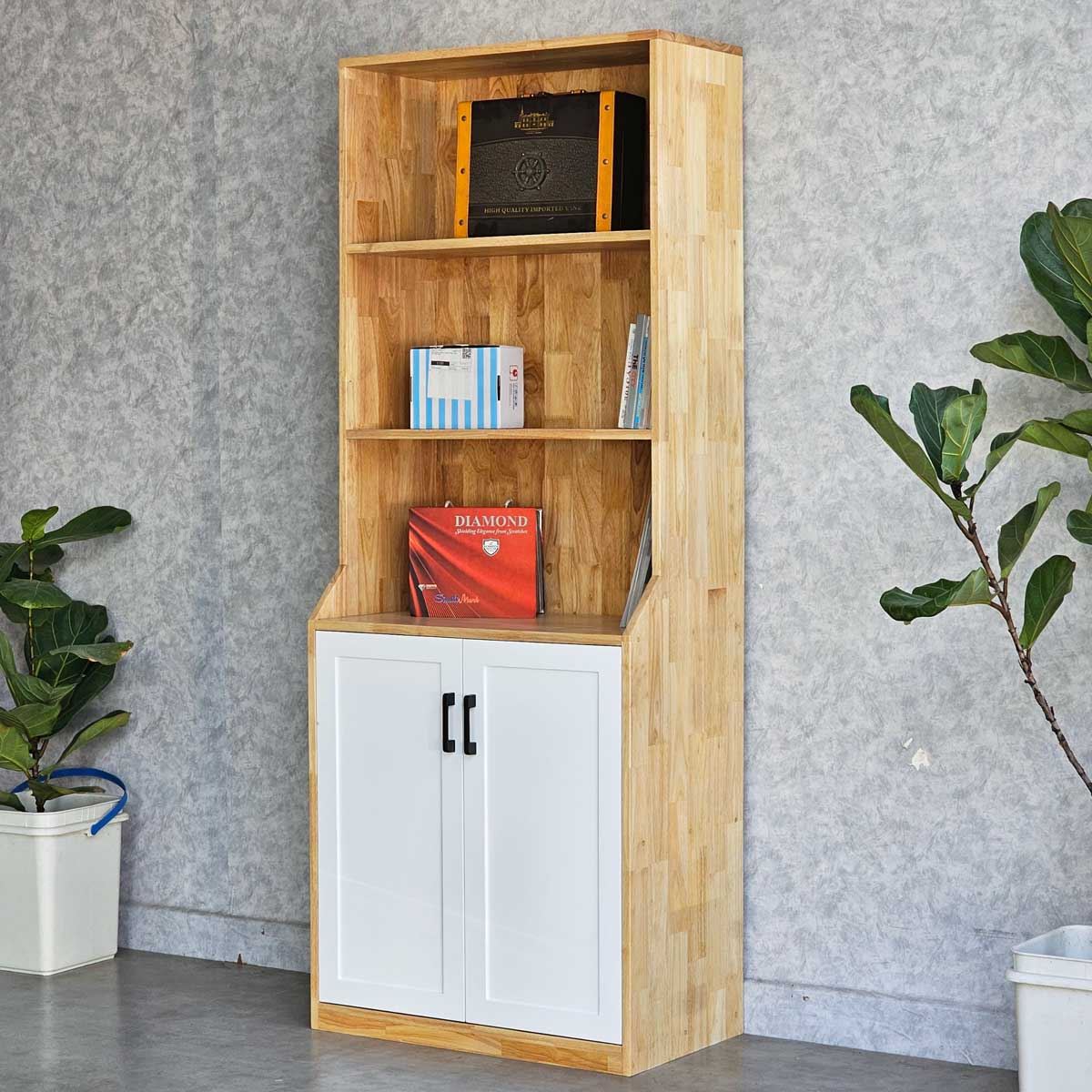 Điểm nhấn của kệ tủ sách là phần cắt vát phía trên tủ, tạo nên sự tinh tế và sang trọng cho sản phẩm. Chi tiết này không chỉ góp phần nâng cao thẩm mỹ cho kệ sách mà còn mang đến cảm giác nhẹ nhàng, thanh thoát cho không gian. Với thiết kế thông minh và tiện dụng, kệ sách gỗ cao su không chỉ giúp bạn sắp xếp sách vở gọn gàng mà còn là nơi để bạn trưng bày những món đồ trang trí yêu thích. Kệ sách phù hợp với mọi không gian, từ phòng khách, phòng ngủ đến phòng làm việc.
