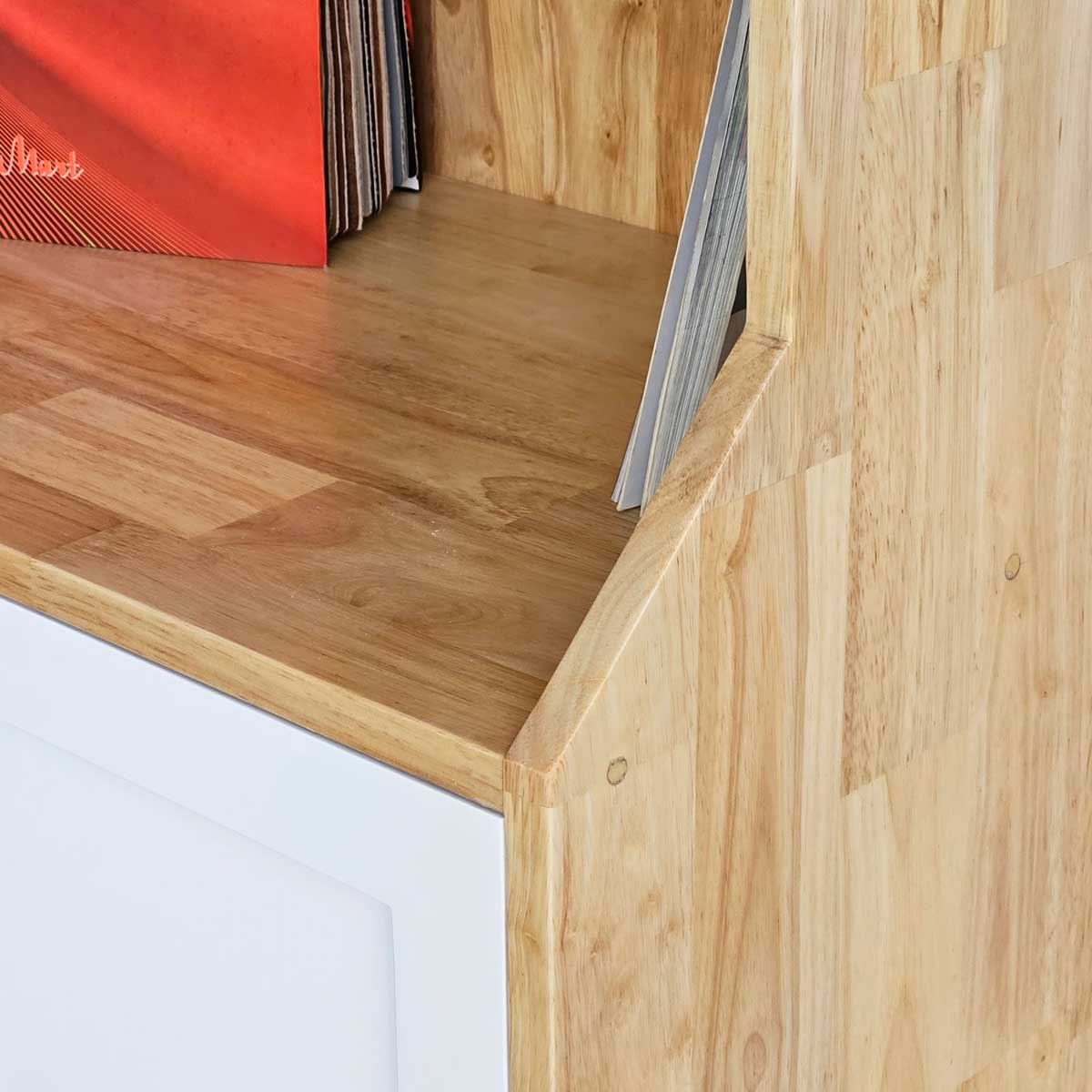 Kệ được làm bằng chất liệu gỗ cao su AA, tiêu chuẩn xuất khẩu, được xử lý chà nhám kỹ lưỡng, bề mặt xử lý chống thấm nước, giúp tăng độ bền và đảm bảo tính thẩm mỹ cao