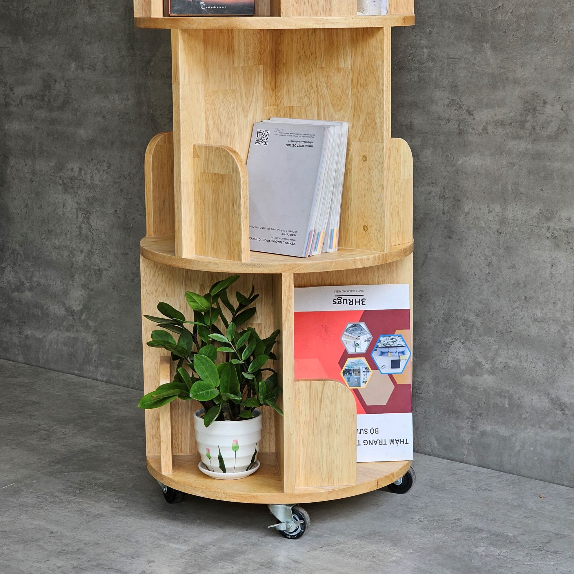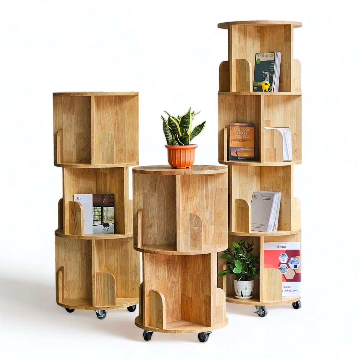 Kệ sách di động 3 tầng gỗ tự nhiên KS68192 sử dụng hoàn toàn bằng gỗ cao su tự nhiên được xử lý và hoàn thiện chống thấm nước, chống cong vênh và có vân màu sắc đẹp mắt, ngoài màu gỗ tự nhiên bạn có thể lựa chọn những màu sắc khác trong bảng màu gỗ tại HomeOffice. Dưới chân kệ trang bị bánh xe có khoá dễ dàng di chuyển khi cần. Kiểu dáng kệ độc đáo phù hợp nhiều không gian từ phòng khách gia đình đến văn phòng công ty hay sảnh chờ khu vực công cộng,...