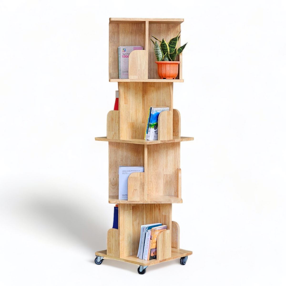 Kệ sách di động 4 tầng gỗ tự nhiên KS68193 sử dụng chất liệu chính là gỗ cao su tự nhiên được xử lý chống thấm nước, chống cong vênh bền bỉ theo thời gian. Thiết kế độc đáo với mỗi tầng xoay 45 độ với nhau và mỗi tầng chia thành 4 ngăn nhỏ bên cạnh đó dưới chân kệ được trang bị bánh xe có khoá tiện lợi. Gỗ ngoài mà tự nhiên nhiều màu sắc để bạn lựa chọn tuỳ theo không gian khác nhau.