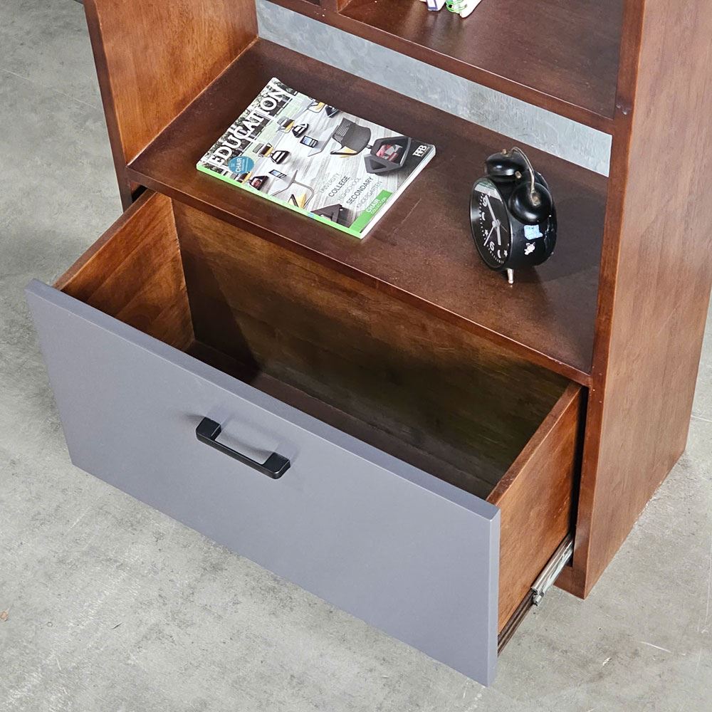Với 4 tầng kệ được phân chia đều nhau, kệ sách KS68299 giúp tạo nên những khoảng không gian lý tưởng để trưng bày sách báo và các vật dụng trang trí. Sự phân chia này không chỉ mang tính thẩm mỹ mà còn rất tiện dụng, giúp bạn dễ dàng sắp xếp và tìm kiếm sách một cách nhanh chóng. Ngăn kéo kín đáo được đặt ở phía dưới kệ là một điểm nhấn tinh tế, vừa mang lại không gian lưu trữ kín đáo cho những vật dụng cá nhân, vừa tạo sự cân bằng về mặt thị giác cho tổng thể thiết kế.