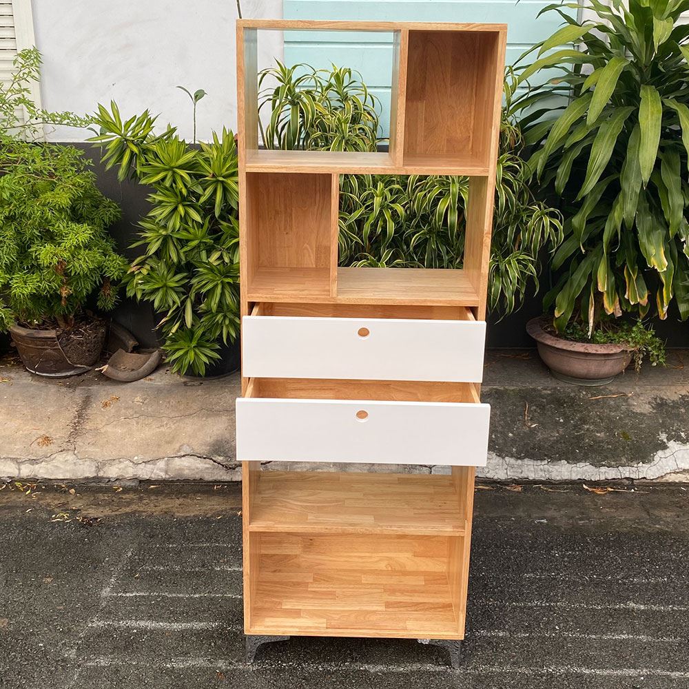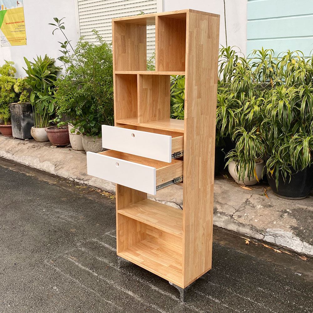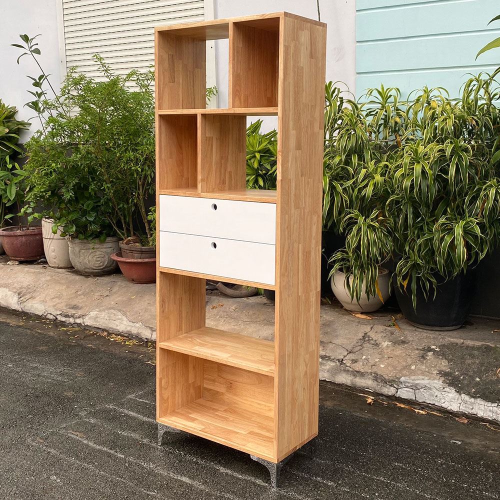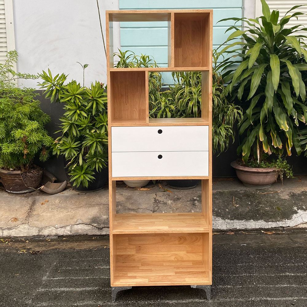 Kệ sách gỗ cao su đế chân sắt KS68155 có kích thước chiều ngang 60cm, chiều rộng 30cm tương đối nhỏ gọn phù hợp với không gian có diện tích khiêm tốn. Chất liệu chính được sử dụng là gỗ cao su tự nhiên tiêu chuẩn AA dày 17mm đã được xử lý qua công nghệ cao, xử lý chống thấm nước và không bị cong vênh trong quá trình sử dụng, đảm bảo độ bền theo thời gian. Chân sắt sử dụng loại dày 1.2mm chắc chắn, sở hữu khả năng chịu lực đáng nể, bề mặt chân phủ lớp sơn tĩnh điện cao cấp chống rỉ sét.