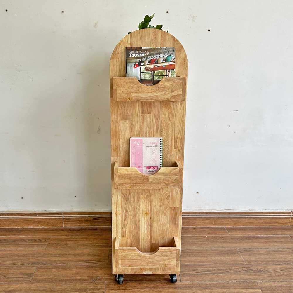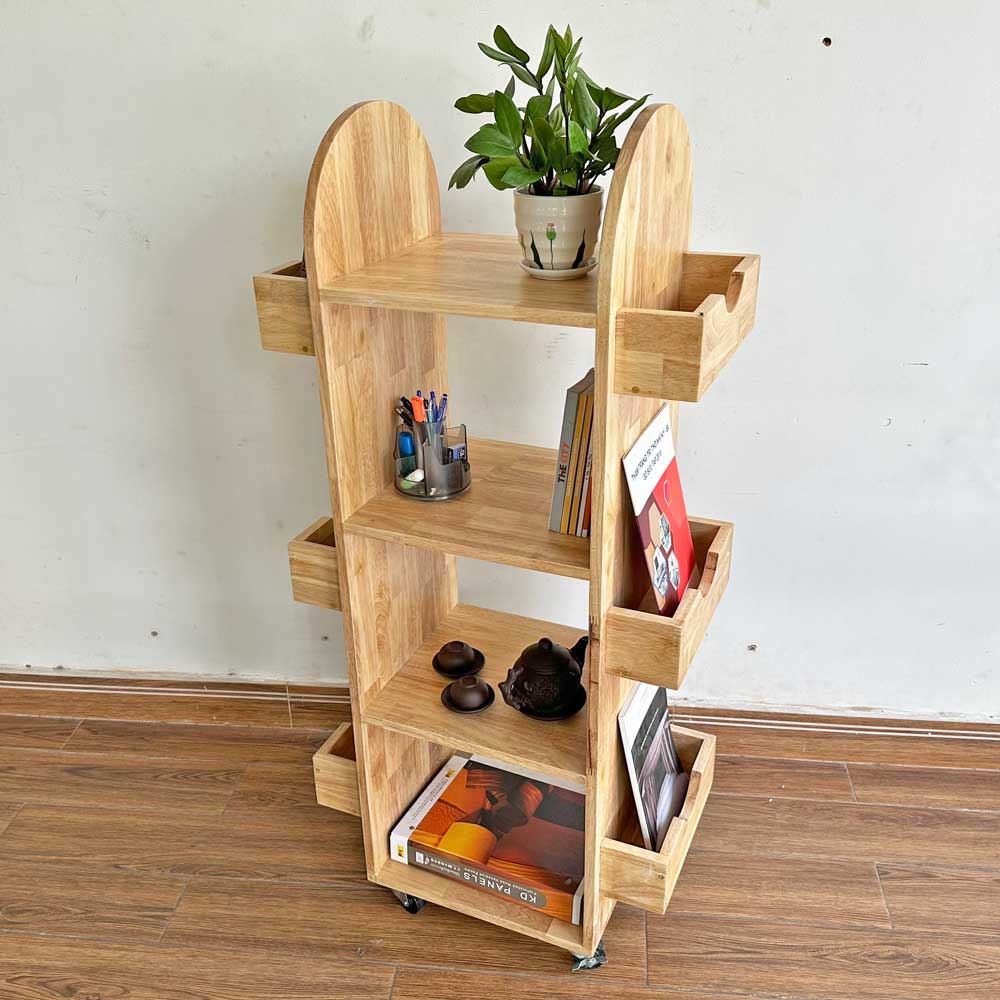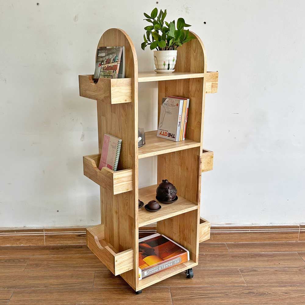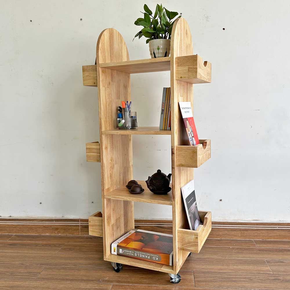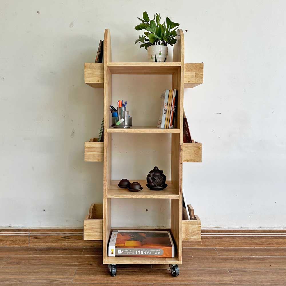Kệ sách di động KS68197 sử dụng hoàn toàn bằng gỗ cao su tự nhiên được xử lý và hoàn thiện chống thấm nước, chống cong vênh và có vân màu sắc đẹp mắt, ngoài màu gỗ tự nhiên bạn có thể lựa chọn những màu sắc khác trong bảng màu gỗ tại HomeOffice. Dưới chân kệ trang bị bánh xe có khoá dễ dàng di chuyển khi cần. Kiểu dáng kệ độc đáo phù hợp nhiều không gian từ phòng khách gia đình đến văn phòng công ty hay sảnh chờ khu vực công cộng,...