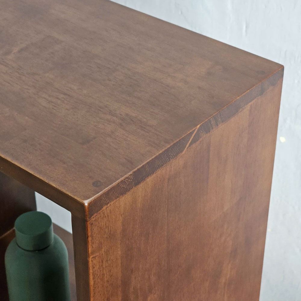 Kệ được làm hoàn toàn bằng chất liệu gỗ cao su AA, là tiêu chuẩn gỗ xuất khẩu, được tuyển chọn kỹ lưỡng từ những cây gỗ tốt nhất. Gỗ cao su có độ bền cao, khả năng chịu lực tốt và đặc biệt thân thiện với môi trường. Hơn nữa, bề mặt gỗ đã được xử lý chà nhám kỹ lưỡng và phủ một lớp sơn PU chống thấm. Lớp sơn này không chỉ bảo vệ gỗ khỏi ẩm mốc và trầy xước, mà còn mang đến vẻ đẹp sáng bóng, sang trọng cho sản phẩm.