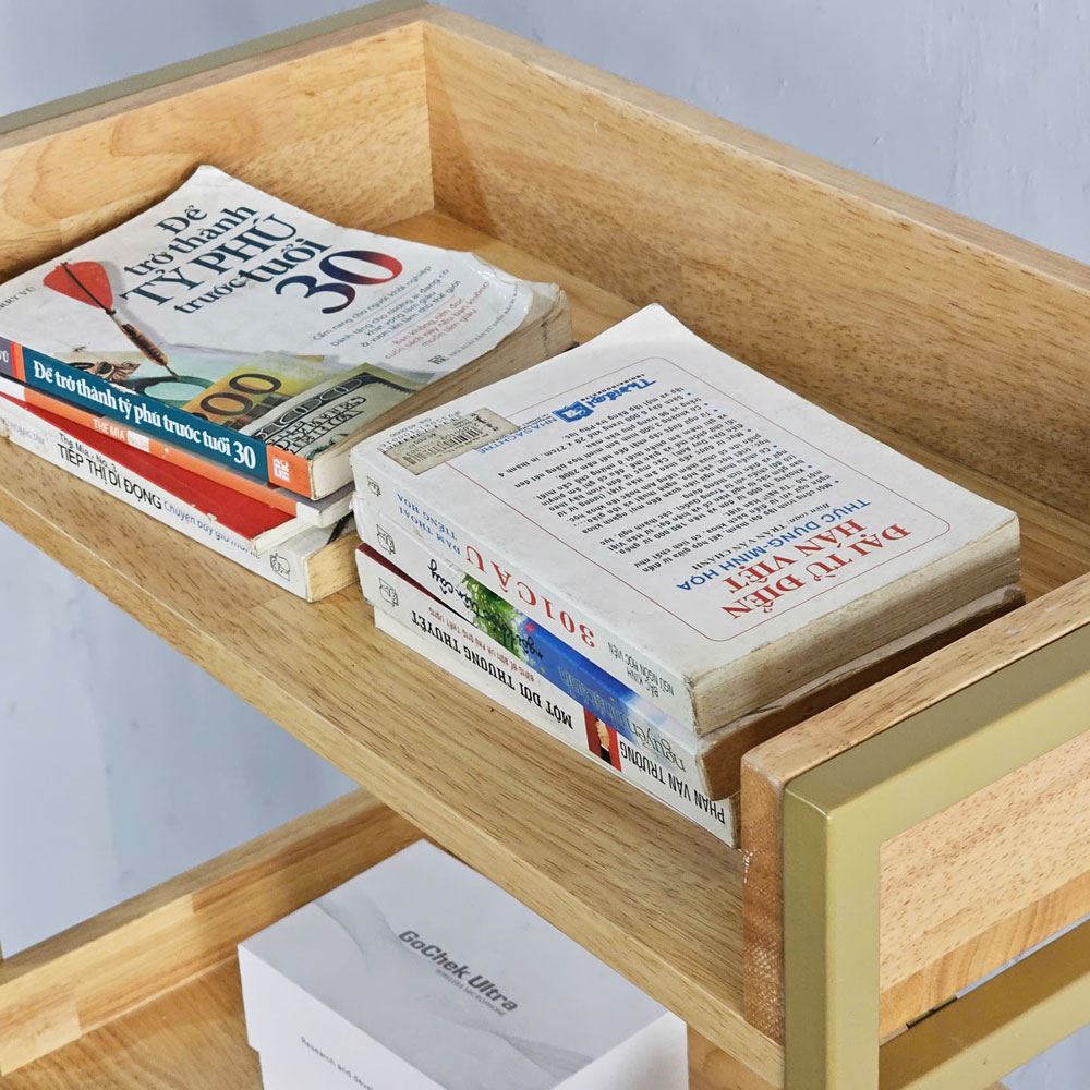 Các đợt kệ và ngăn tủ được làm bằng chất liệu gỗ cao su AA, đây là loại gỗ tự nhiên có độ bền cao, vân gỗ đẹp và màu sắc ấm áp. Bề mặt gỗ đã được xử lý chống thấm và chà nhám kỹ lưỡng, mịn màng giúp tạo cảm giác dễ chịu khi sờ vào. Khung kệ được làm từ sắt hộp 20x20mm dày 1.2mm, được sơn tĩnh điện, giúp chống gỉ sét, chống trầy xước và chịu lực tốt. Độ dày 1.2mm đảm bảo sự chắc chắn và ổn định cho kệ sách, giúp bạn yên tâm sử dụng trong thời gian dài.