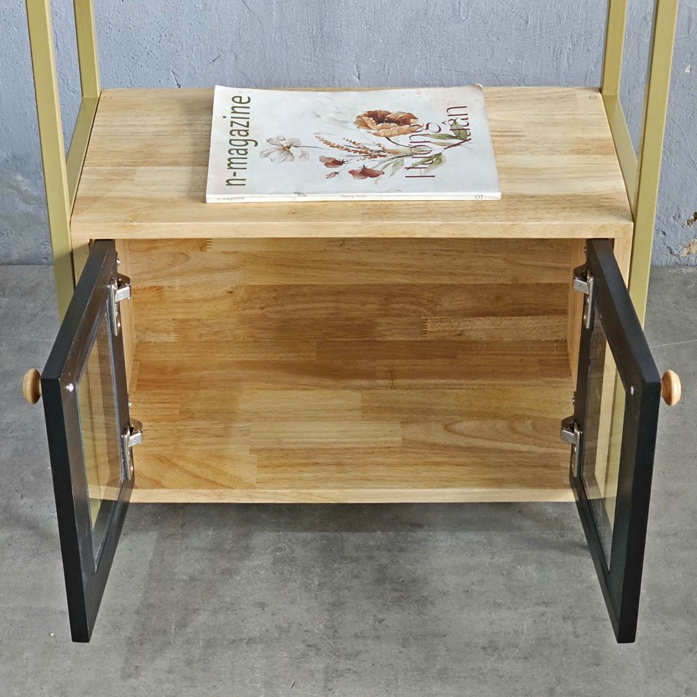 Ngăn tủ hai cánh cửa kính phía dưới mang đến không gian lưu trữ kín đáo và an toàn. Bạn có thể sử dụng ngăn tủ này để cất giữ những vật dụng cá nhân, tài liệu quan trọng, hoặc những món đồ cá nhân. Cánh cửa kính không chỉ giúp bạn dễ dàng quan sát đồ vật bên trong, mà còn tạo hiệu ứng thị giác, giúp không gian trở nên rộng rãi và thoáng đãng hơn.