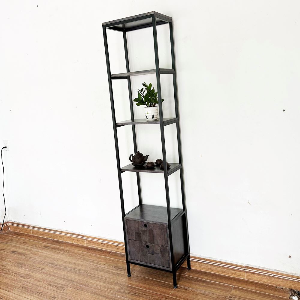 Kệ sách nhỏ gọn gỗ cao su khung sắt KS68181 với kích thước nhỏ gọn, thiết kế 4 tầng và 2 ngăn kéo tiện lợi phù hợp với không gian có diện tích khiêm tốn. Gỗ cao su AA chuẩn xuất khẩu đã qua xử lý công nghệ hiện đại giúp chống cong vênh, được sơn phủ lớp PU chống thấm nước đảm bảo độ bền cao kết hợp cùng khung sắt dày 1.2mm chắc chắn.