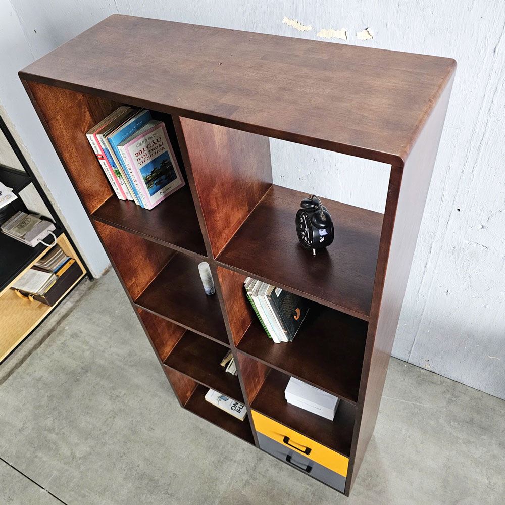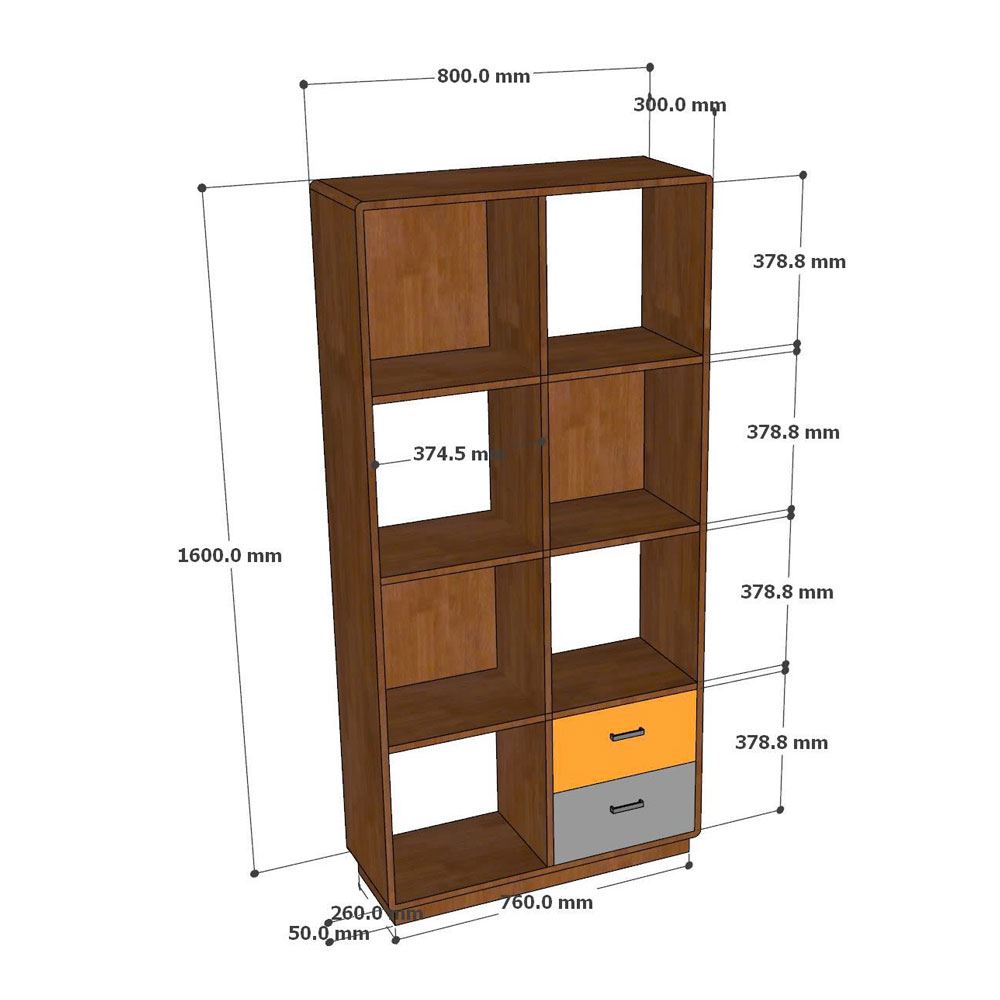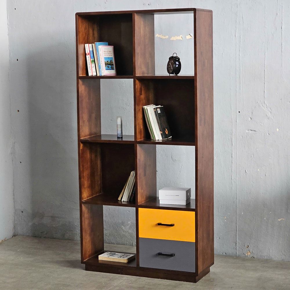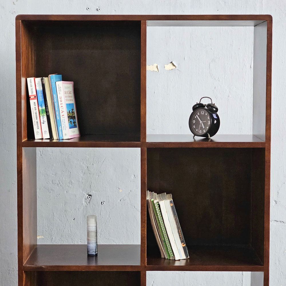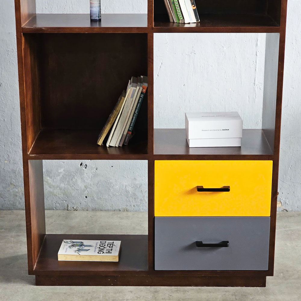 Bên cạnh đó, việc tích hợp hai ngăn kéo vào một ô vuông bên dưới cùng là một điểm nhấn thiết kế vô cùng tinh tế. Nó không chỉ phá vỡ sự đơn điệu của các ô vuông mà còn mang đến không gian lưu trữ kín đáo, lý tưởng cho những vật dụng cá nhân. Cùng với kích thước phủ bì là 80x30x160cm, kệ sách mang lại không gian lưu trữ lớn, giúp tận dụng tối đa không gian theo chiều dọc, có thể để được một lượng lớn sách và đồ vật trang trí mà không chiếm quá nhiều diện tích sàn.