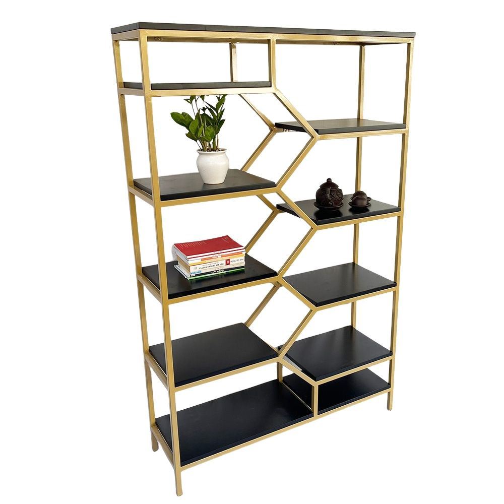 Kệ sách trang trí BEE-SHELF khung sắt gỗ cao su KTB68108 lấy thiết kế từ một tổ ong mật với các đường chéo và các kệ lệch tầng rất đẹp mắt, có thể dùng làm kệ sách, kệ trang trí hay kệ trưng bày sản phẩm đều được. Với chất liệu khung sắt hộp vuông 20mm hàn cố định sơn tĩnh điện và gỗ cao su tiêu chuẩn AA dày 17mm sơn Pu hoàn thiện nên rất chắc chắn và bền bỉ.