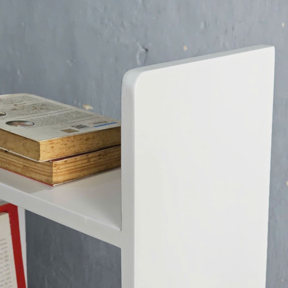 Kệ sách được làm bằng chất liệu gỗ cao su AA, tiêu chuẩn xuất khẩu, được tuyển chọn kỹ lưỡng từ những cây gỗ tốt nhất. Gỗ cao su nổi tiếng với độ bền cao, khả năng chịu lực tốt và vân gỗ đẹp tự nhiên. Bề mặt gỗ được chà nhám kỹ lưỡng, tạo bề mặt mịn màng, sau đó được phủ một lớp sơn PU chống thấm nước. Lớp sơn này không chỉ bảo vệ gỗ khỏi ẩm mốc, mối mọt mà còn tạo độ bóng đẹp, giúp chiếc kệ luôn giữ được vẻ đẹp như mới.