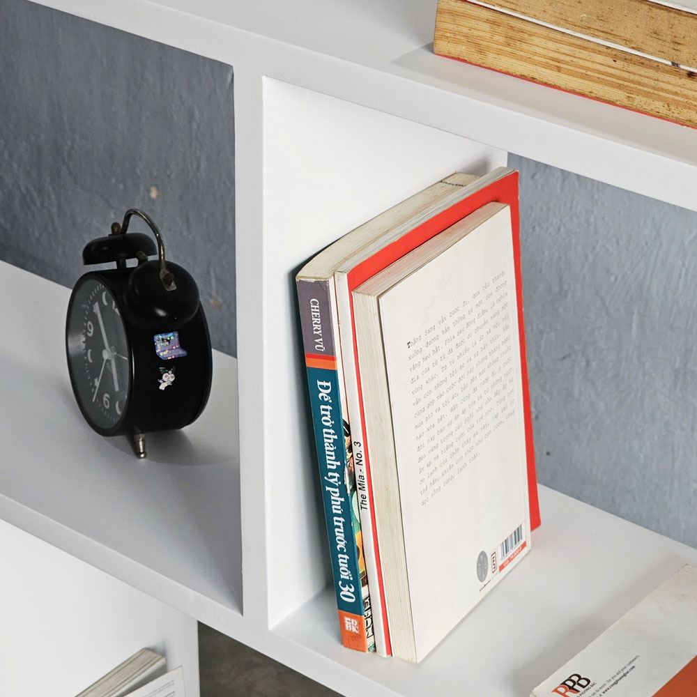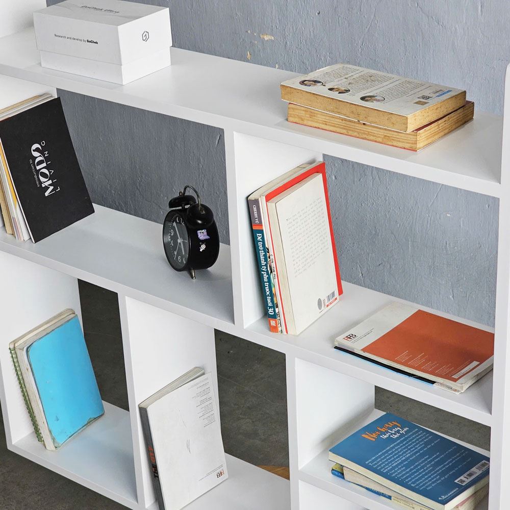 Thiết kế của kệ sách KS68307 là sự kết hợp hài hòa giữa những đường nét vuông vắn, mạnh mẽ và sự mềm mại, tinh tế. Các ngăn kệ mở được phân chia một cách khoa học, tạo nên một bố cục cân đối, hài hòa. Sự phân chia này không chỉ mang tính thẩm mỹ mà còn vô cùng tiện dụng, cho phép bạn trưng bày sách, vật dụng trang trí một cách linh hoạt và sáng tạo. Bạn có thể đặt những cuốn sách yêu thích theo chiều dọc, chiều ngang, hoặc kết hợp với những món đồ decor nhỏ xinh như chậu cây mini, khung ảnh, hay những món đồ lưu niệm.