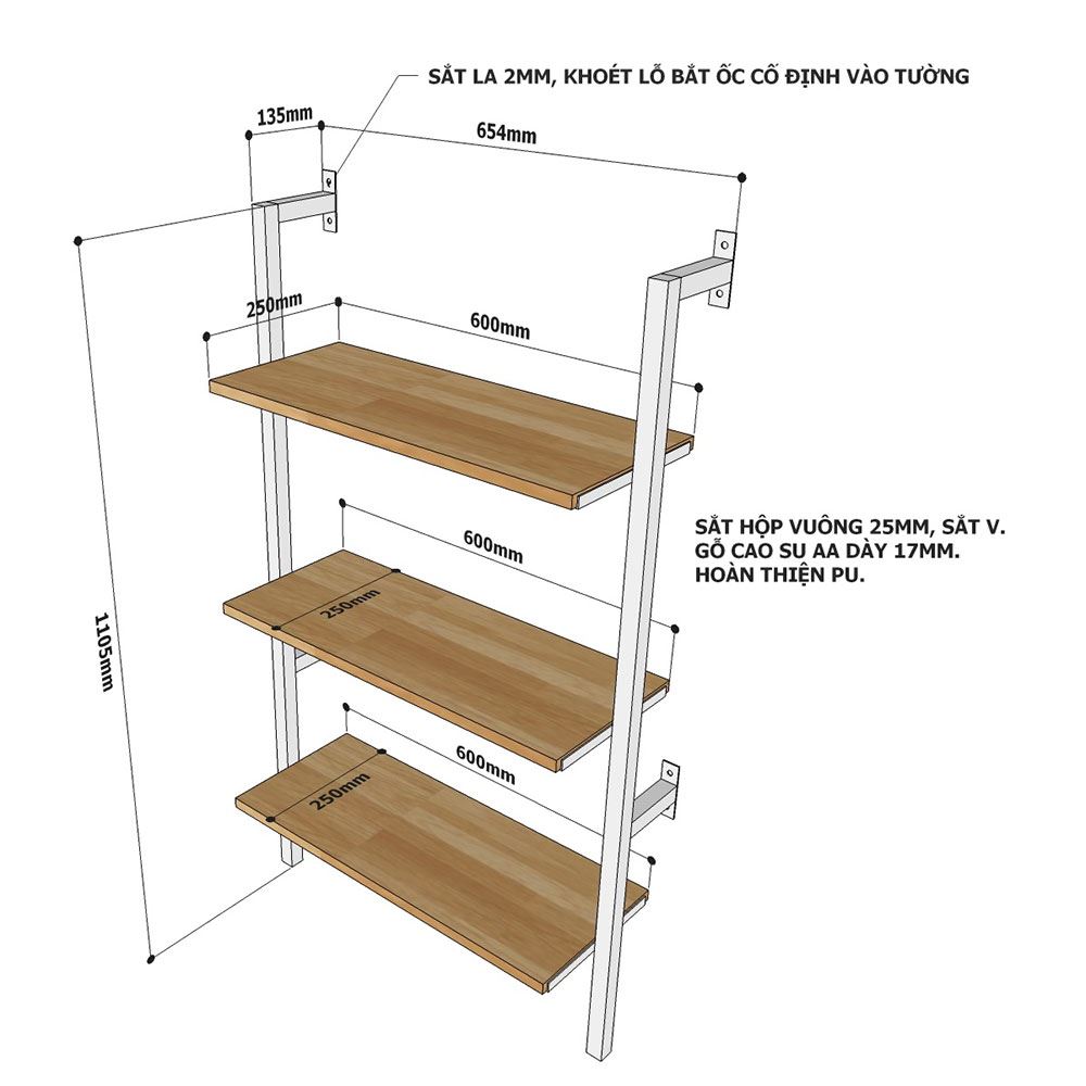Kệ sắt treo tường 3 tầng 65x25x110(cm) KTT68015 Một mẫu kệ treo tường trang trí với Series mới của Homeoffice với những kiểu thiết kế lạ mắt và độc đáo dựa trên sự kết hợp chân sắt hộp và gỗ cao su tự nhiên. Gỗ cao su tự nhiên được xử lý chống thấm nước, cong vênh kết hợp với khung sắt vuông 25x25 thanh mảnh mang đến sự tinh tế cho sản phẩm. Kệ treo tường KTT68015 sở hữu kiểu dáng nhỏ gọn là lựa chọn hoàn hảo cho những không gian, diện tích khiêm tốn.