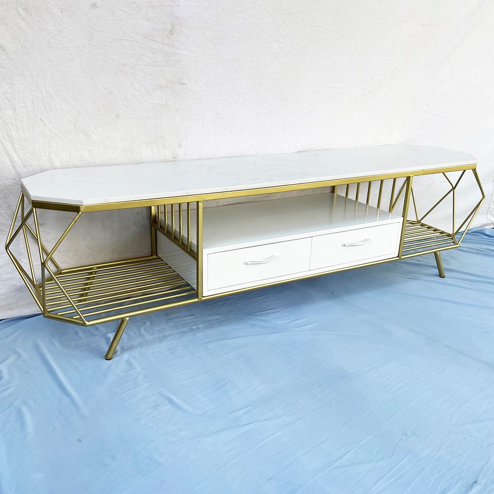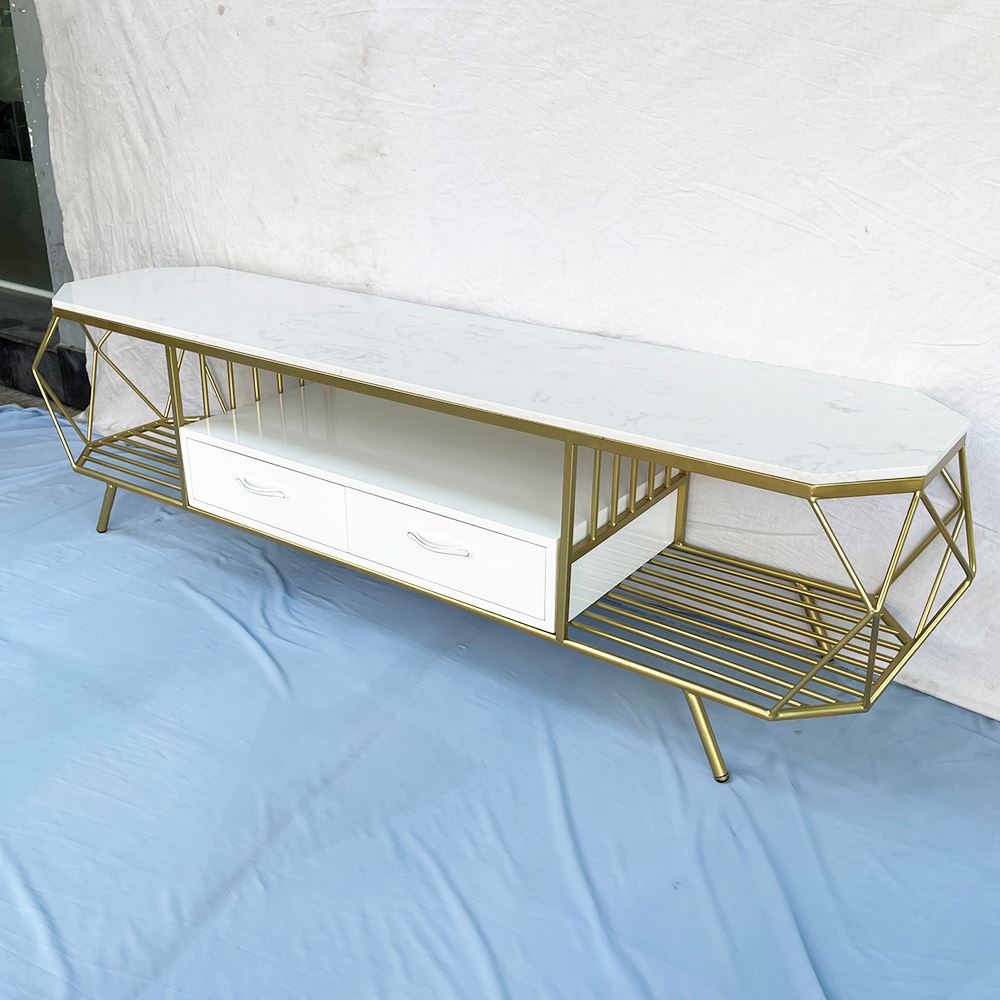 Kệ tivi có hộc tủ mặt đá khung vàng đồng