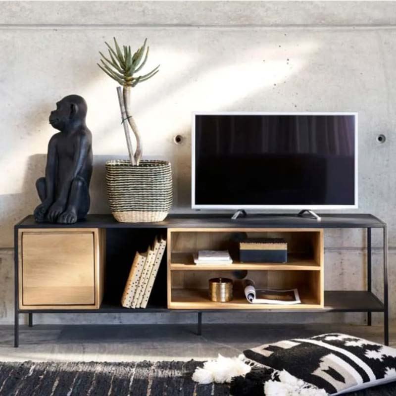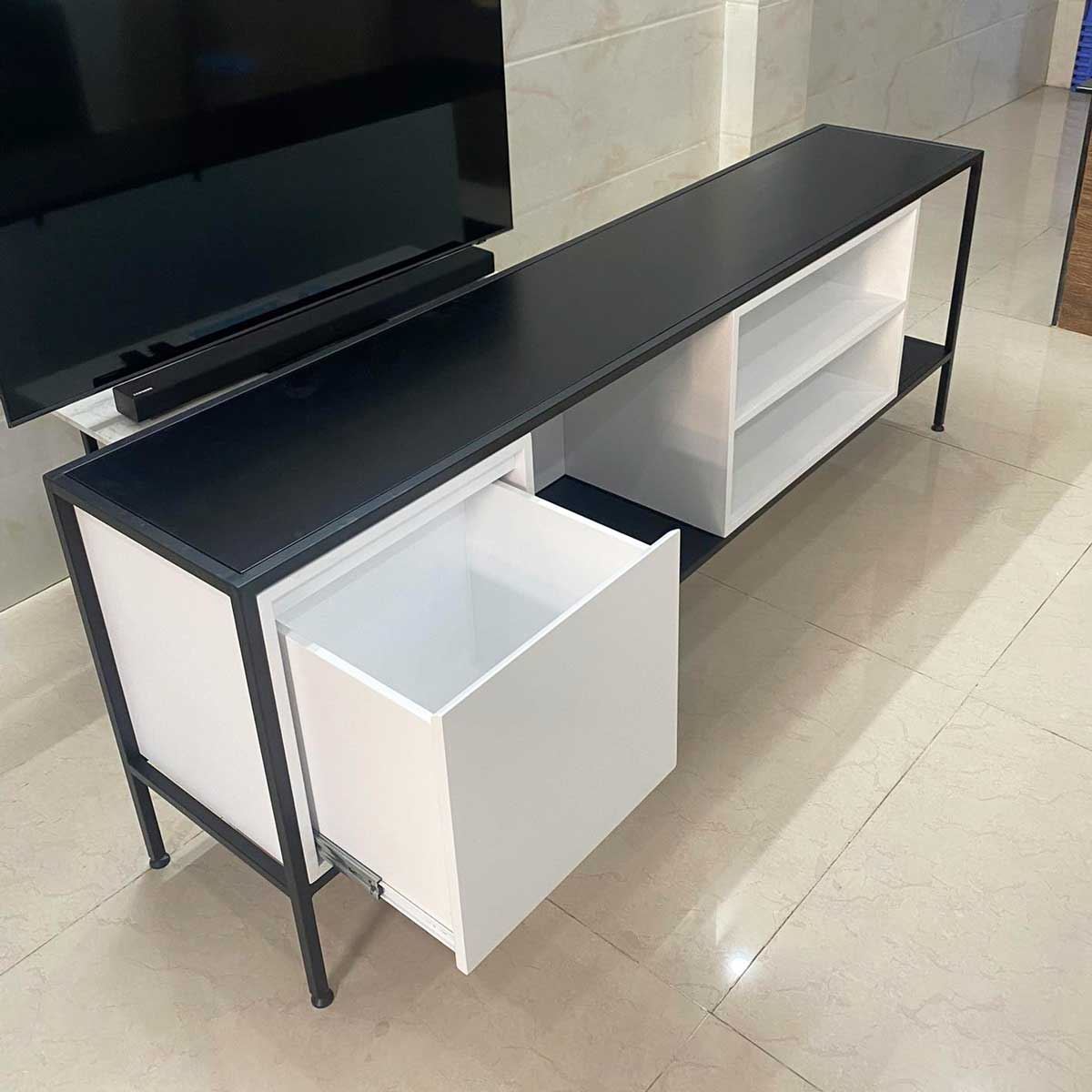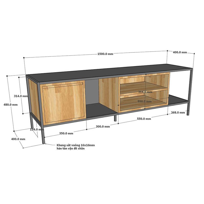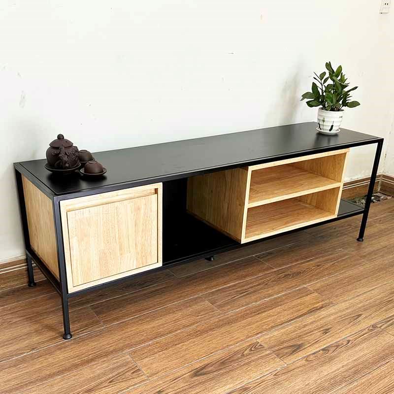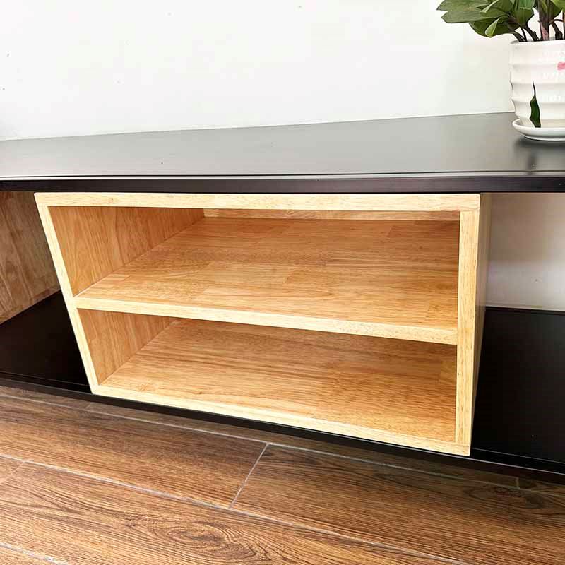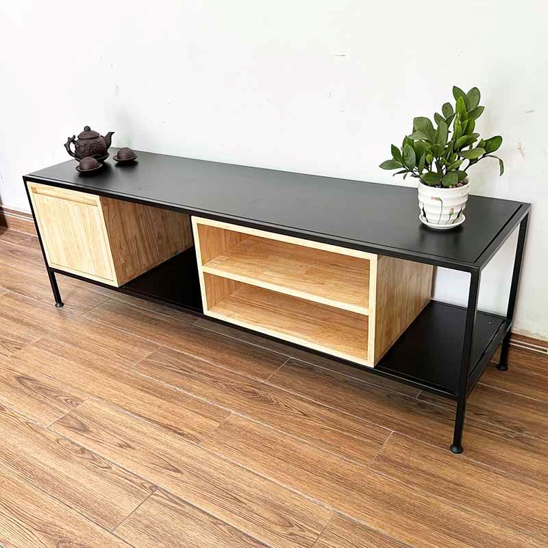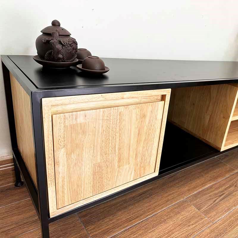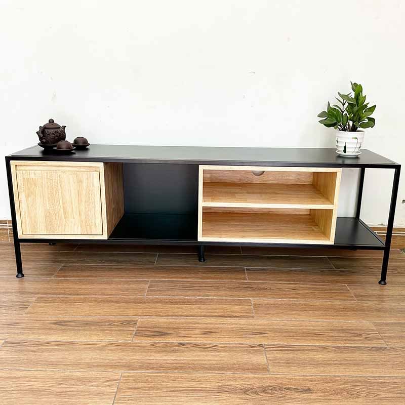 Kệ tivi gỗ cao su khung sắt KTV68097 với chiều dài 1.5m phù hợp với đa phần không gian và mọi thiết bị có thể vừa làm kệ tivi vừa làm tủ trang trí đều rất đẹp mắt. Chất liệu chính là gỗ cao su sơn Pu phối hợp giữa màu đen và màu tự nhiên kết hợp cùng khung sắt sơn tĩnh điện vô cùng chắc chắn. Sở hữu kiểu dáng hiện đại, tinh tế kết hợp với thiết kế thông minh chia nhiều ngăn, tầng giúp tăng không gian lưu trữ trong phòng khách.