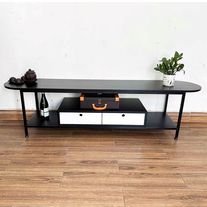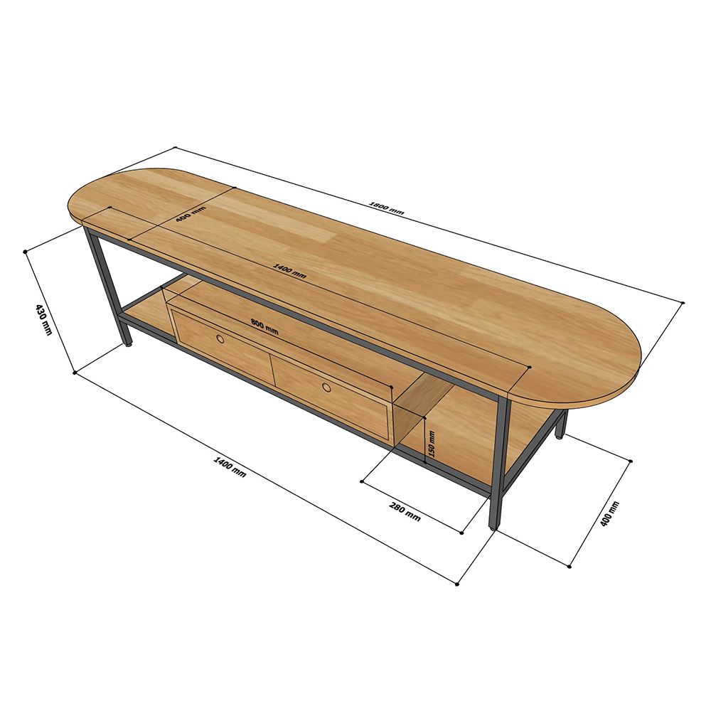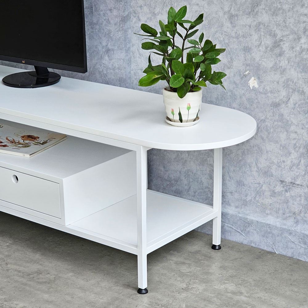 Kệ tivi Oval có ngăn kéo gỗ cao su khung sắt KTV68090 có thiết kế hiện đại, mặt bàn hình bầu dục (oval) tạo điểm nhấn thú vị cho không gian phòng khách. Chất liệu chính là gỗ cao su tiêu chuẩn AA dày 17mm được xử lý và hoàn thiện đẹp mắt, bề mặt được phủ lớp sơn chống thấm nước dễ dàng vệ sinh khi mặt bàn dính nước. Khung chân sắt hàn cố định chắc chắn, sắt dày 1.2mm sơn tĩnh điện chất lượng cao bền bỉ theo thời gian.