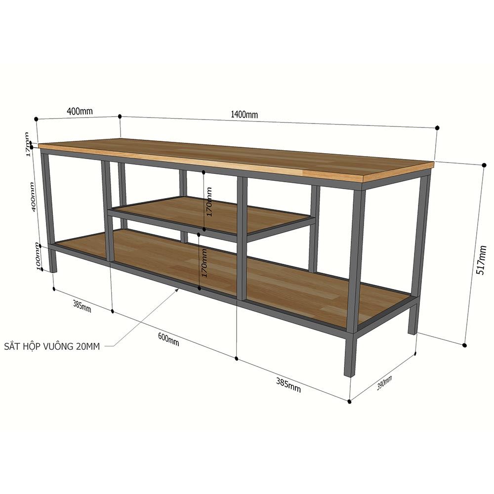 Kệ Tivi ZAME 140cm đơn giản khung sắt gỗ cao su KTV68077