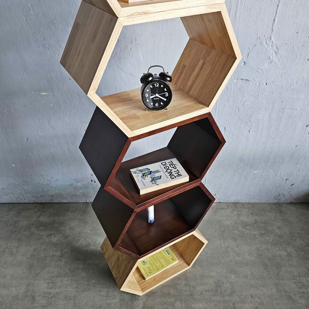 Với thiết kế hình lục giác độc đáo, mỗi chiếc kệ như một tế bào sống, cùng nhau tạo nên một tổ hợp đầy sinh động. Tổ hợp 5 chiếc kệ sẽ tạo ra vô vàn cách sắp xếp. Bạn có thể xếp chúng chồng lên nhau, tạo thành một khối hình học ấn tượng, hoặc dàn trải chúng trên tường, tạo nên một bức tranh nghệ thuật sống động. Sự linh hoạt của hệ kệ trang trí tổ ong này cho phép bạn thỏa sức sáng tạo, biến không gian nhà mình trở nên sinh động hơn và mang đậm dấu ấn cá nhân.