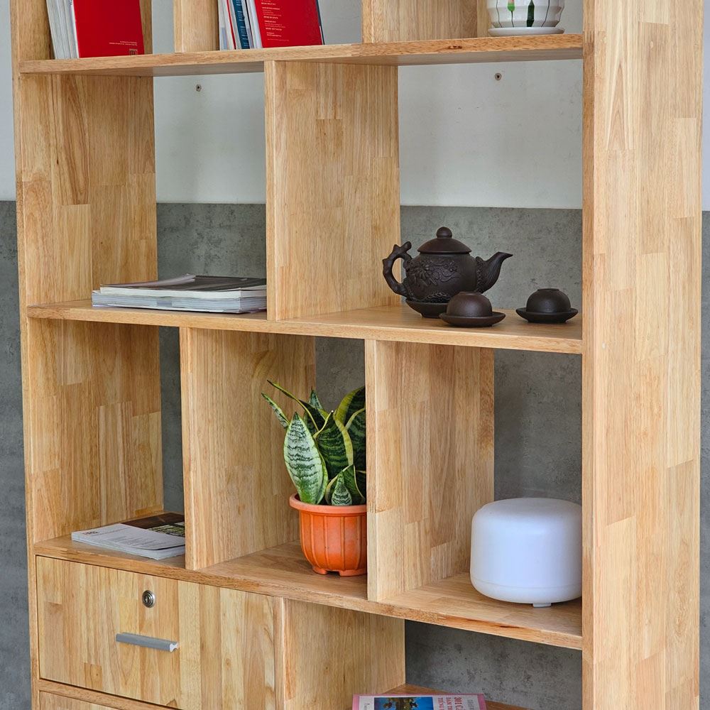 Kệ trang trí KTB68145 có thiết kế nhiều ngăn kệ giúp mang lại cho bạn nhiều không gian lưu trữ hơn. Các ngăn kệ được phân chia thành từng khu vực, điều này sẽ giúp bạn phân chia và tổ chức lại các loại đầu sách một cách khoa học hơn. Tầng cuối cùng là một hệ ngăn tủ của giúp bạn để những món đồ vật quan trọng như máy ảnh, thiết bị điện tử, đồ cá nhân,... Nếu có nhiều sách hơn, bạn có thể bố trí thêm 2 hoặc 3 chiếc kệ trang trí KTB68145, giúp tạo thành hệ kệ liên hợp, giúp cho khu vực để sách thêm đẹp mắt và sinh động.