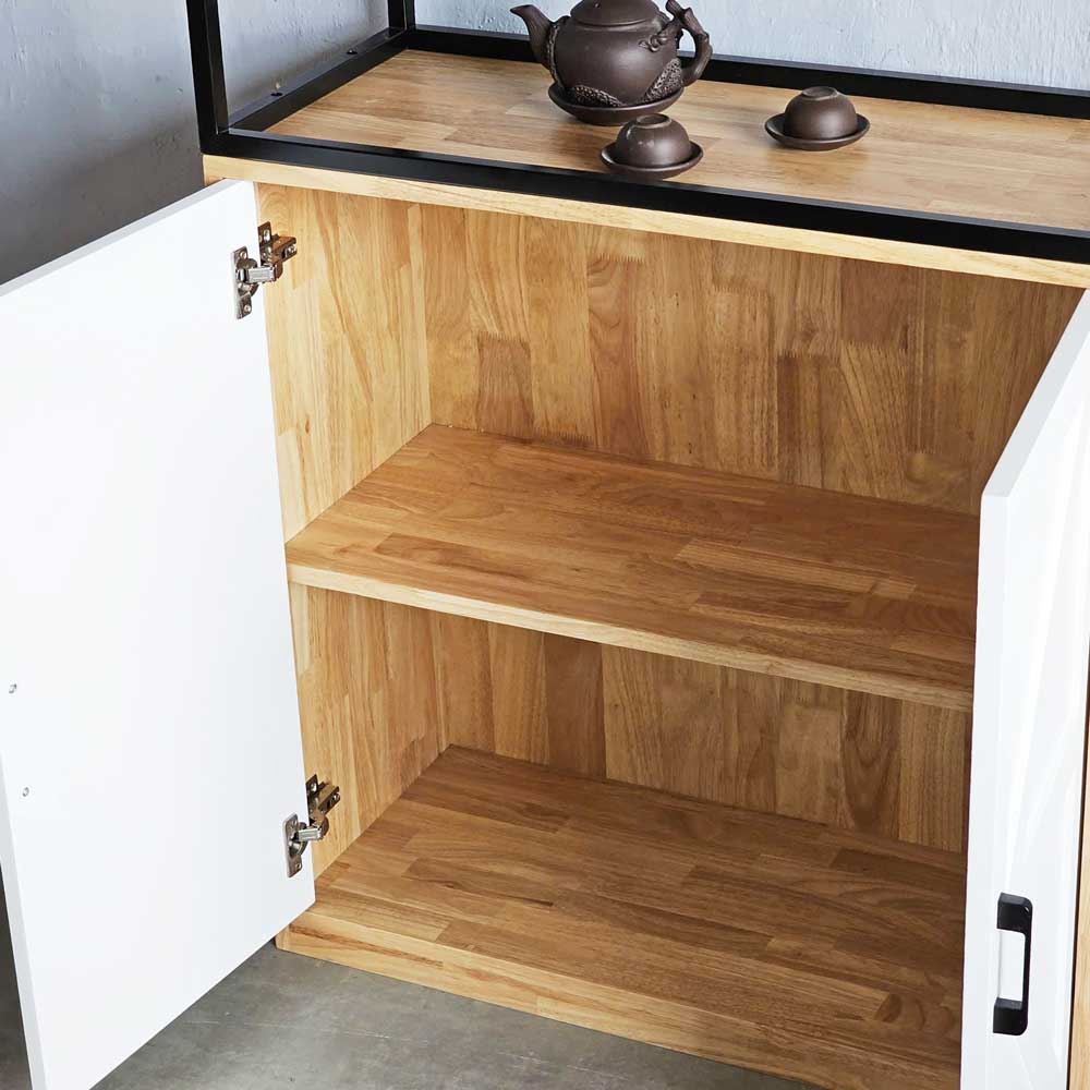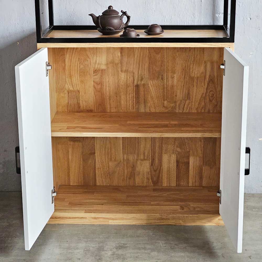 Kệ trang trí được làm bằng chất liệu gỗ cao su AA, chuẩn xuất khẩu, đã qua xử lý chà nhám và chống thấm, giúp mang đến sự bền bỉ và sang trọng cho không gian sống. Phần khung sắt được làm từ sắt hộp 20x20mm, dày 1.2 ly, đảm bảo độ cứng cáp và khả năng chịu lực tốt. Bề mặt sản phẩm được phủ lớp sơn tĩnh điện cao cấp, không chỉ tăng tính thẩm mỹ mà còn bảo vệ sản phẩm khỏi sự oxy hóa và trầy xước.