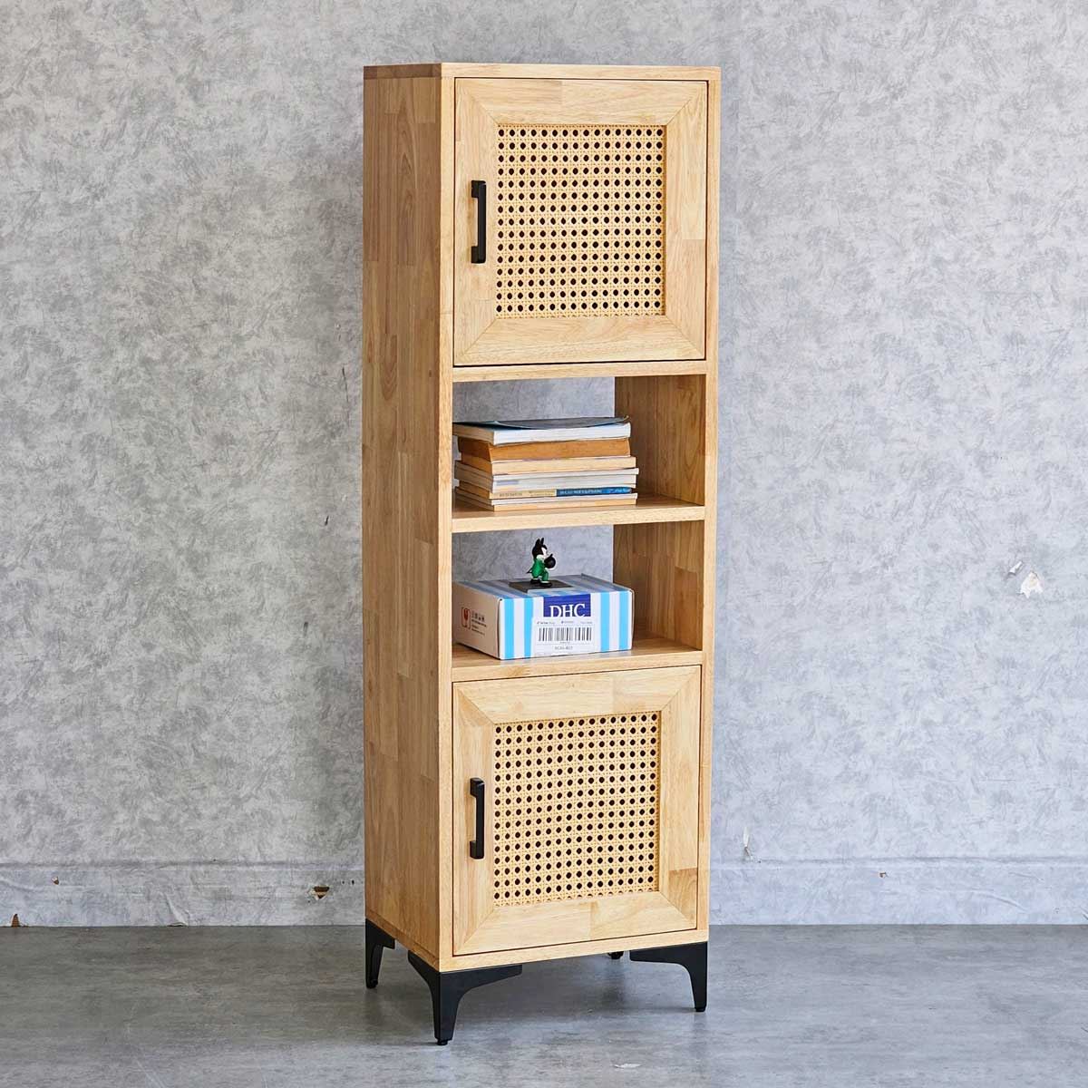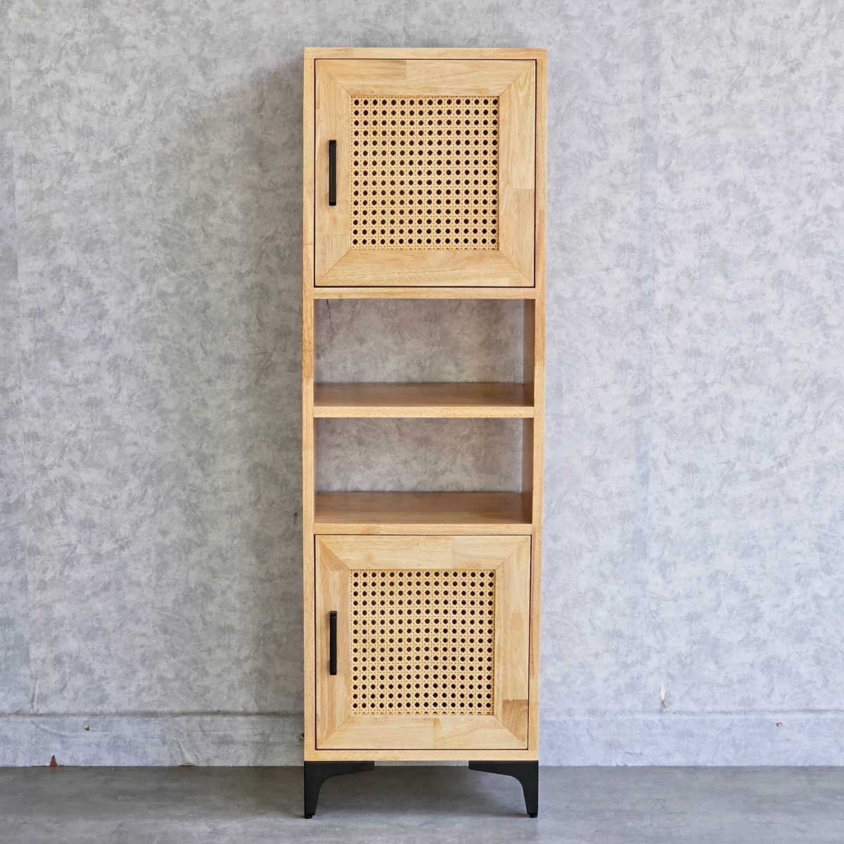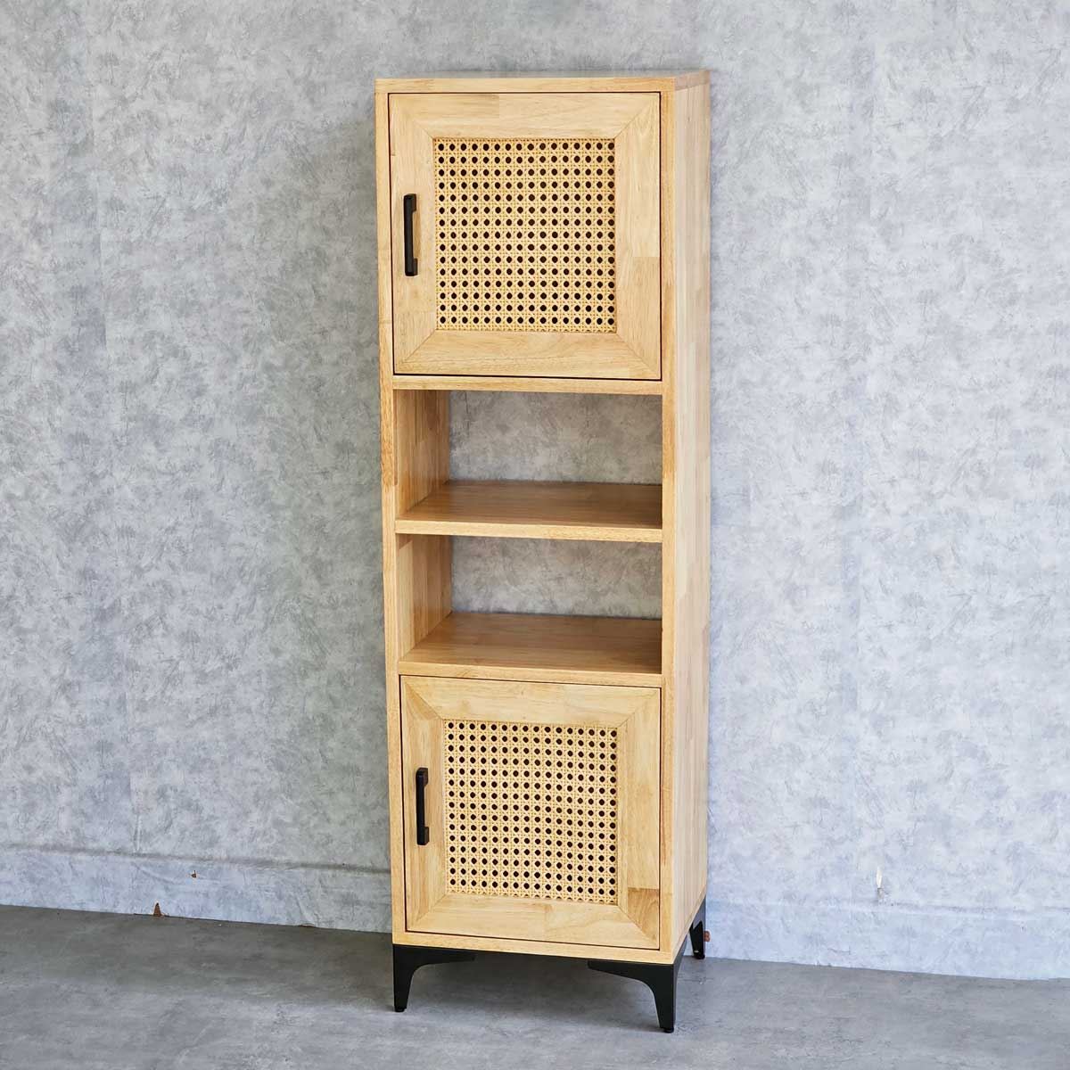 Kệ được chia thành 2 ngăn tủ với cửa lưới mắt cáo, tay nắm bằng sắt tạo điểm nhấn sang trọng. Bên cạnh đó, kệ còn có 2 ngăn kệ giữa để bạn trưng bày sách, đồ lưu niệm hoặc các vật dụng trang trí khác.