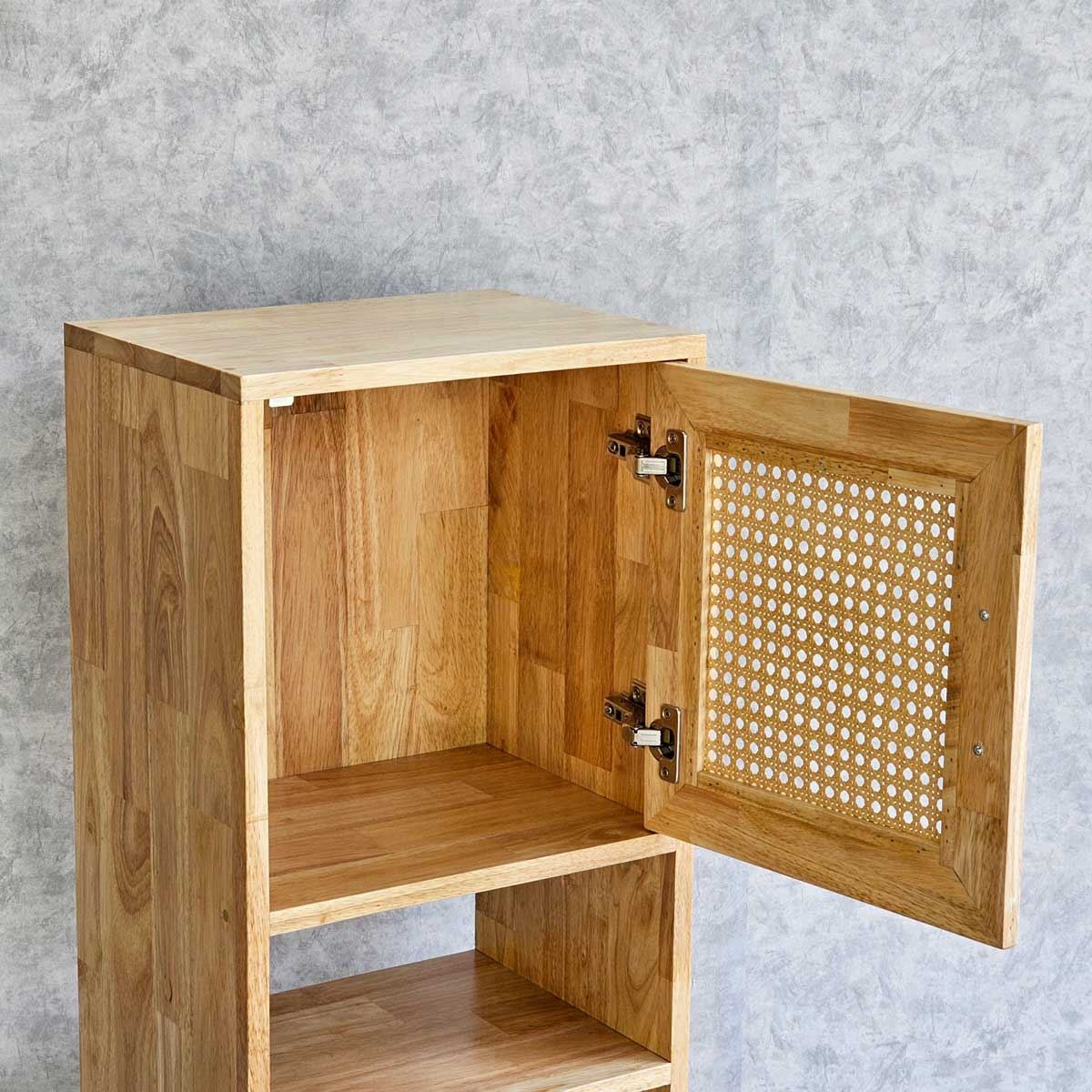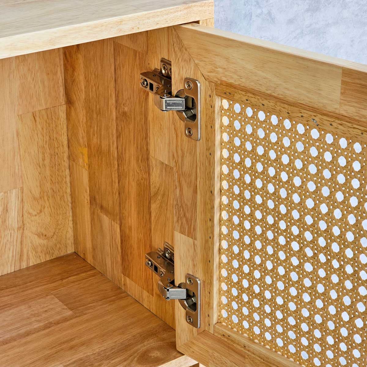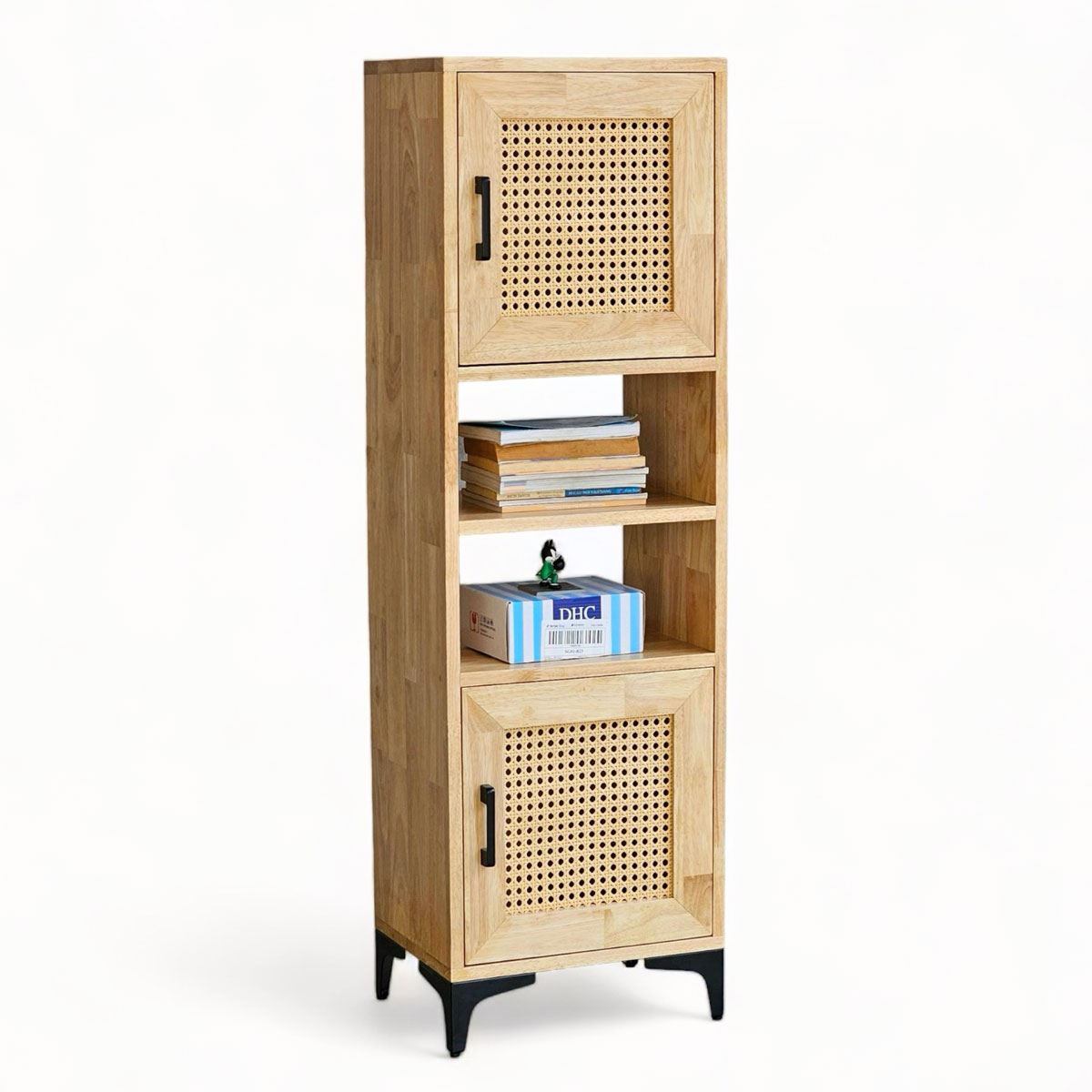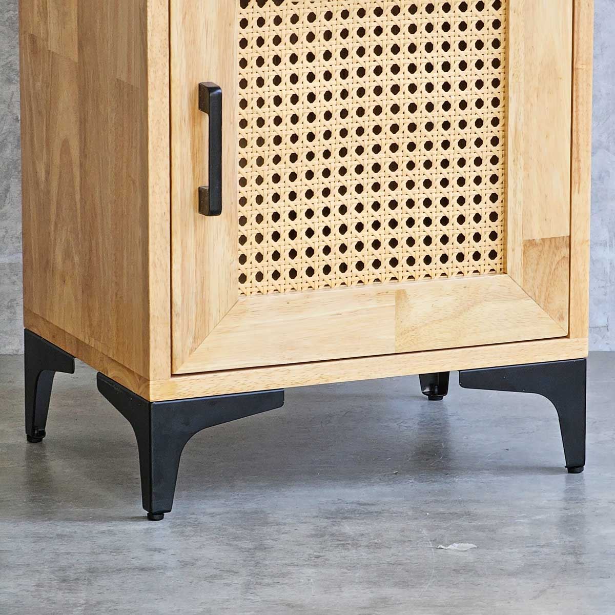 Kệ được chia thành 2 ngăn tủ với cửa lưới mắt cáo, tay nắm bằng sắt tạo điểm nhấn sang trọng. Bên cạnh đó, kệ còn có 2 ngăn kệ giữa để bạn trưng bày sách, đồ lưu niệm hoặc các vật dụng trang trí khác.