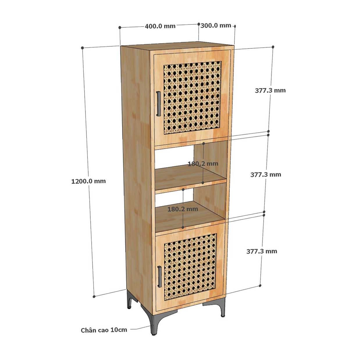 Hai ngăn tủ rộng rãi, được trang bị cửa lưới mắt cáo độc đáo, mang đến sự thông thoáng và giúp bạn dễ dàng cất giữ đồ vật