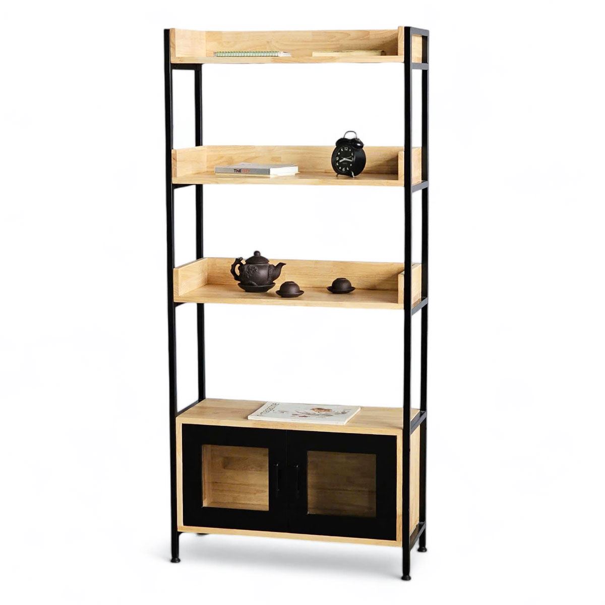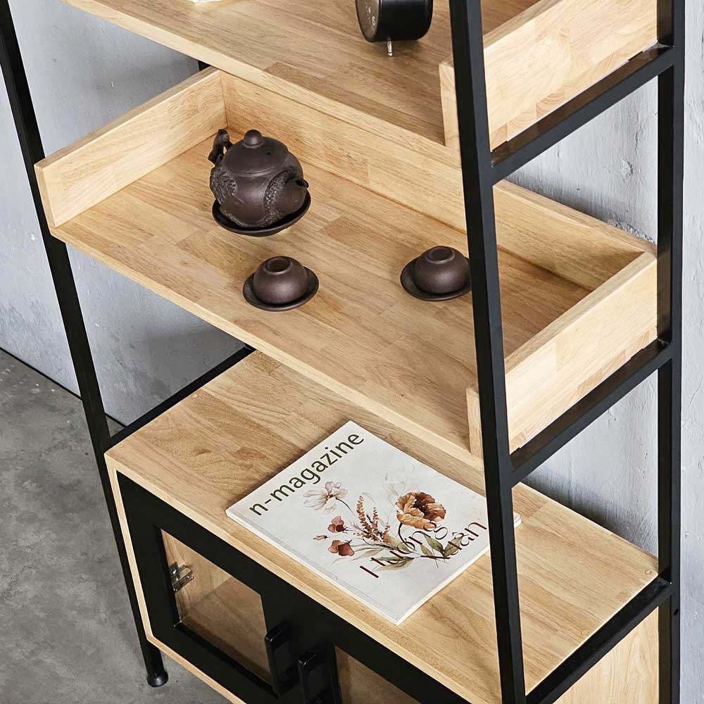 Kệ trang trí KS68266 giúp mang đến vẻ đẹp hiện đại và tiện nghi cho phòng khách của bạn. Với thiết kế 4 tầng kệ mở thông thoáng (bao gồm 1 tầng trên mặt tủ), kết hợp với ngăn tủ kính tinh tế, sản phẩm không chỉ là nơi trưng bày những món đồ yêu thích mà còn giúp bạn tối ưu hóa không gian lưu trữ. Sử dụng làm kệ để sách cũng rất hợp. Chất liệu gỗ cao su tự nhiên được xử lý kỹ lưỡng, kết hợp với khung sắt sơn tĩnh điện chắc chắn, tạo nên một tổng thể hài hòa, bền bỉ và sang trọng. Thiết kế chân sắt không chỉ tăng cường độ bền mà còn mang đến nét độc đáo, giúp kệ dễ dàng hòa hợp với nhiều phong cách nội thất khác nhau.