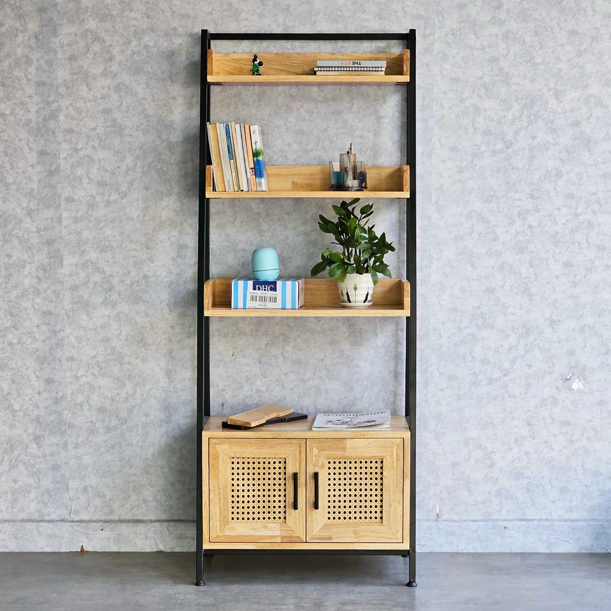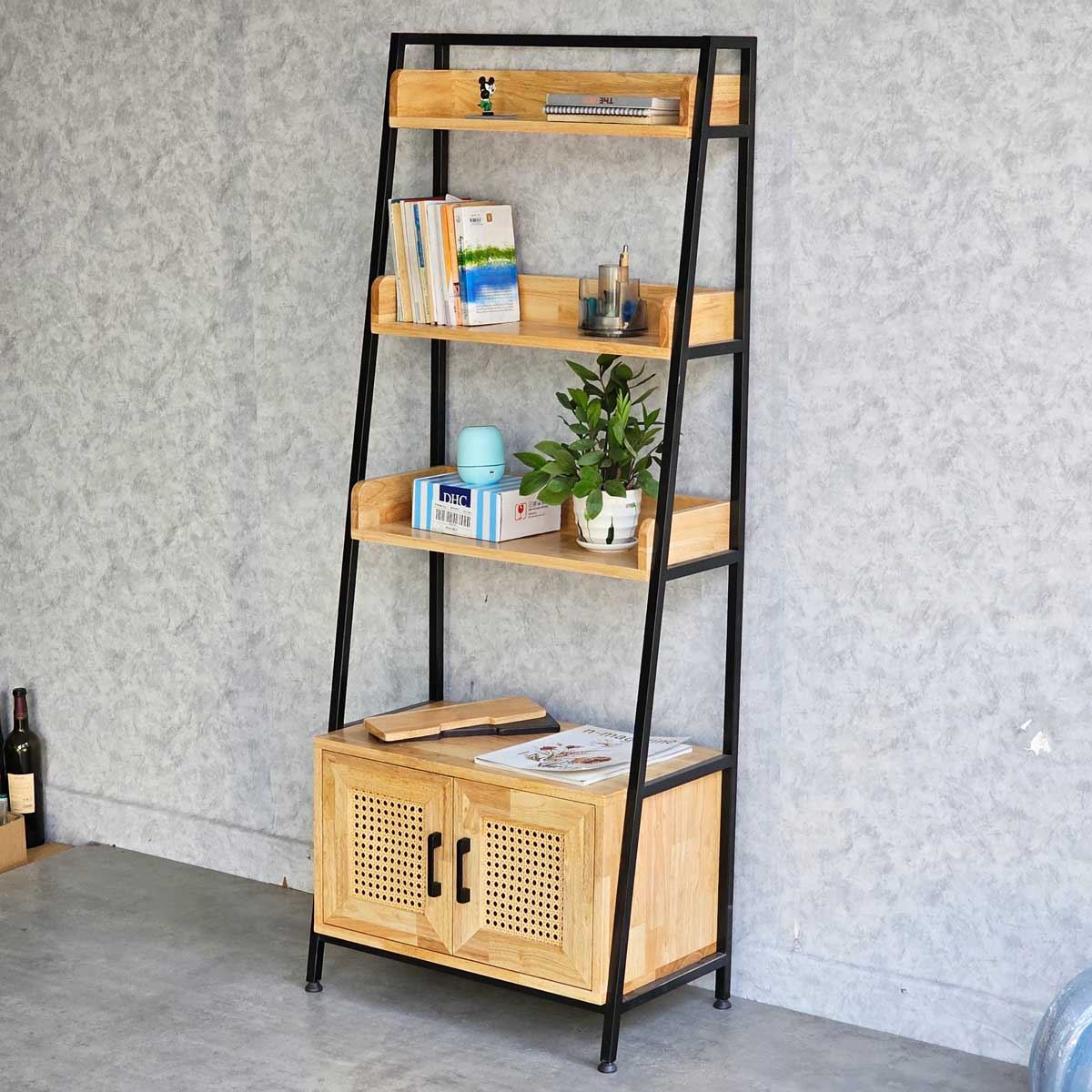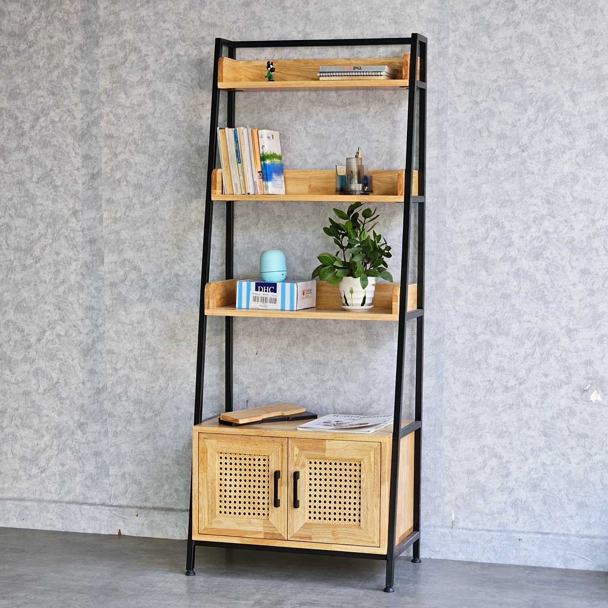 Kệ sách KTB68175 có thiết kế khung sắt hình thang là sự kết hợp hoàn hảo giữa vẻ đẹp hiện đại và tính tiện dụng. Thiết kế thanh mảnh với khung sắt cứng cáp cùng vân gỗ cao su tự nhiên mang đến sự tinh tế cho không gian nội thất. Kệ sách gồm 3 tầng bên trên và 1 ngăn tủ với 2 cửa, cung cấp không gian lưu trữ rộng rãi cho sách, đồ trang trí và nhiều vật dụng khác.