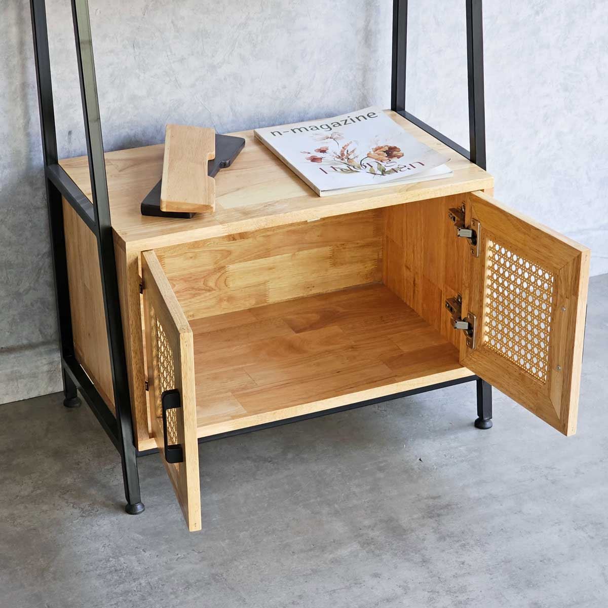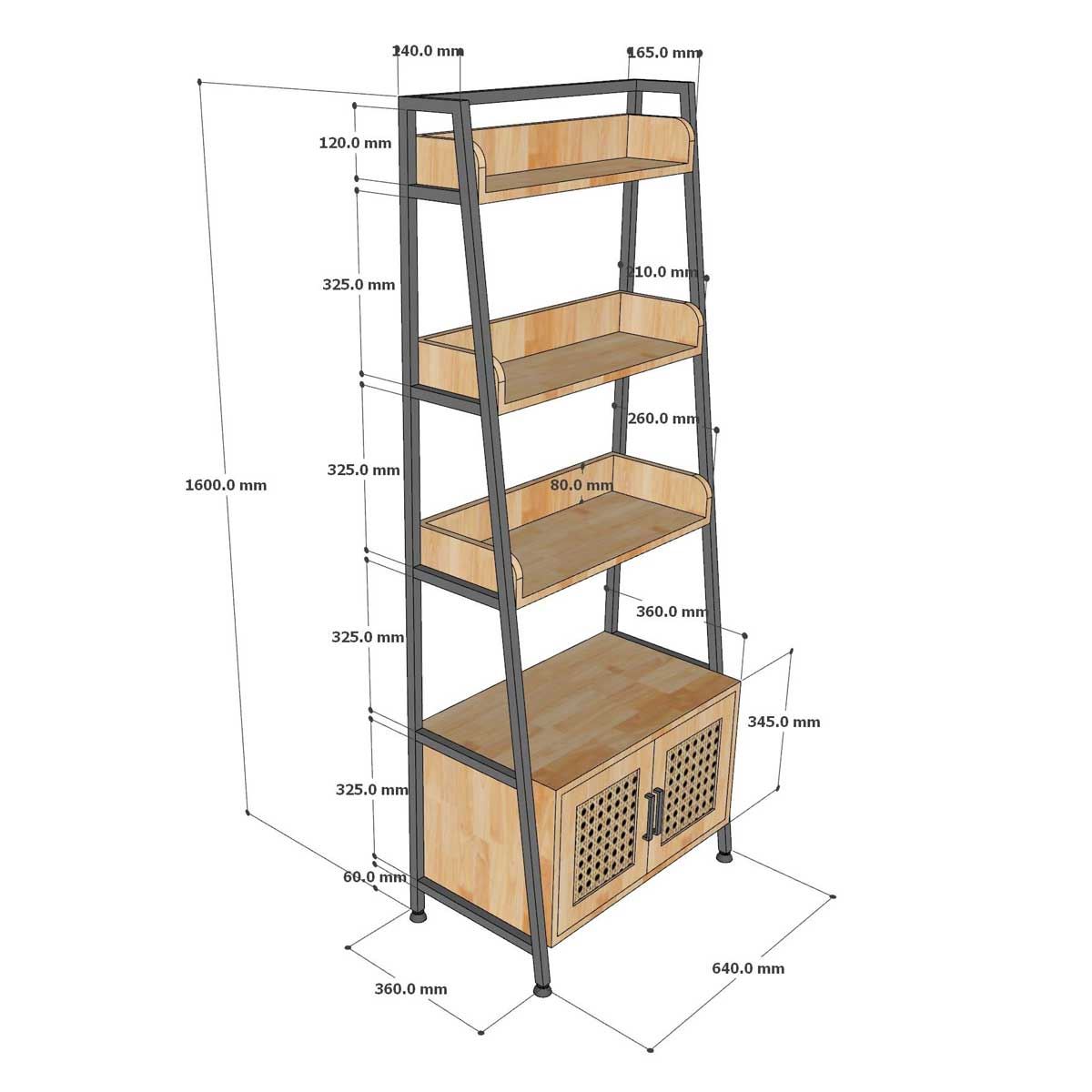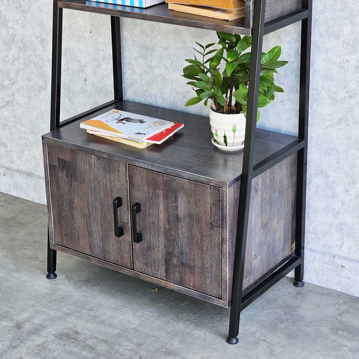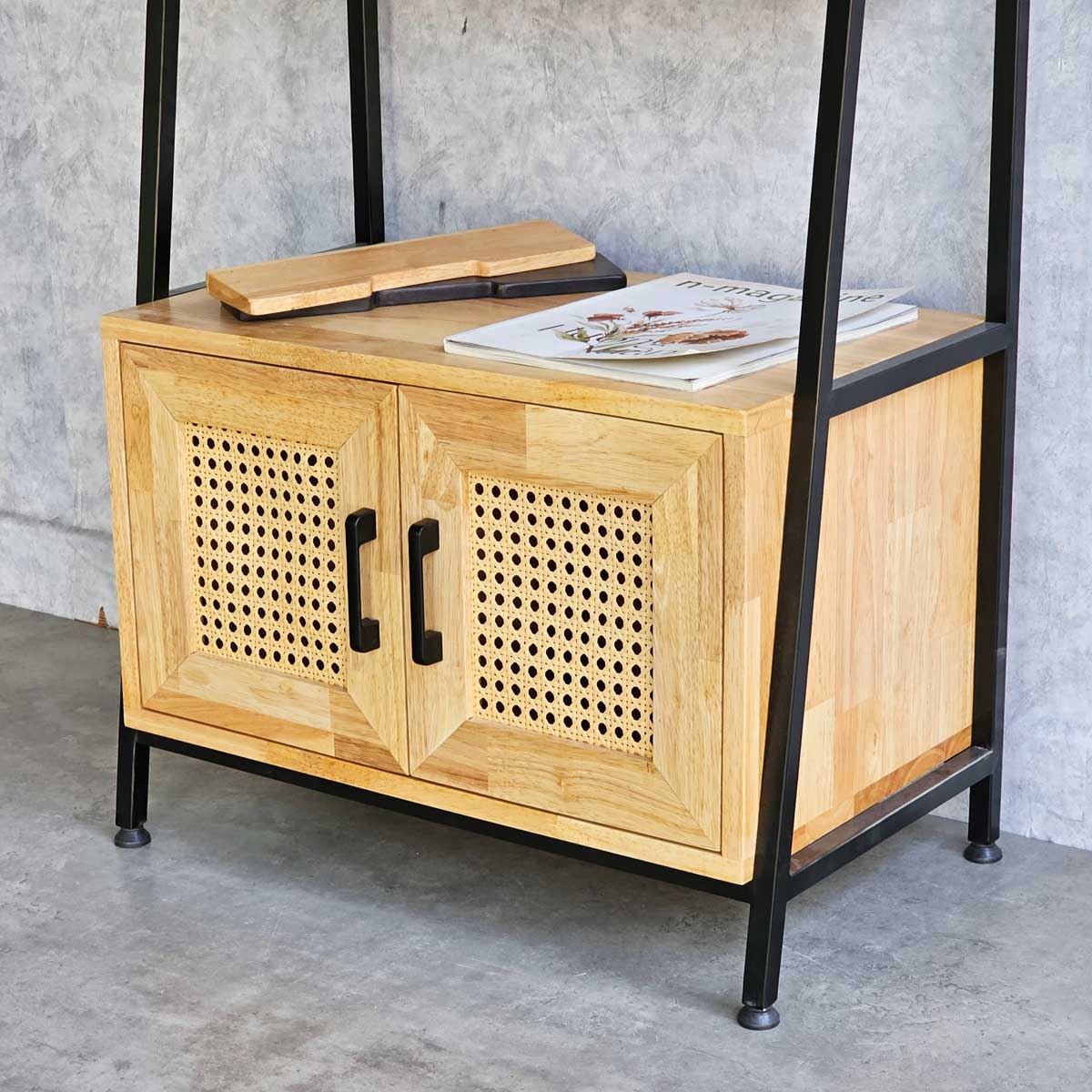 Kệ sách KTB68175 có thiết kế khung sắt hình thang là sự kết hợp hoàn hảo giữa vẻ đẹp hiện đại và tính tiện dụng. Thiết kế thanh mảnh với khung sắt cứng cáp cùng vân gỗ cao su tự nhiên mang đến sự tinh tế cho không gian nội thất. Kệ sách gồm 3 tầng bên trên và 1 ngăn tủ với 2 cửa, cung cấp không gian lưu trữ rộng rãi cho sách, đồ trang trí và nhiều vật dụng khác.