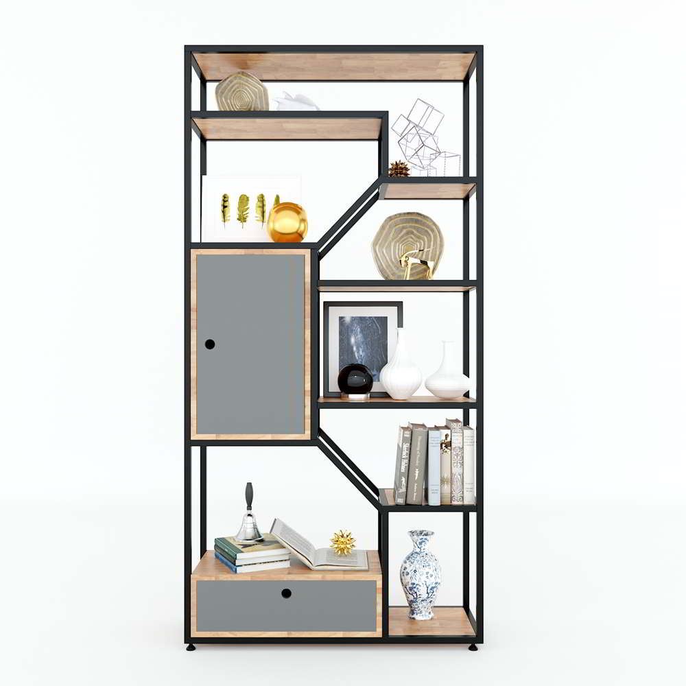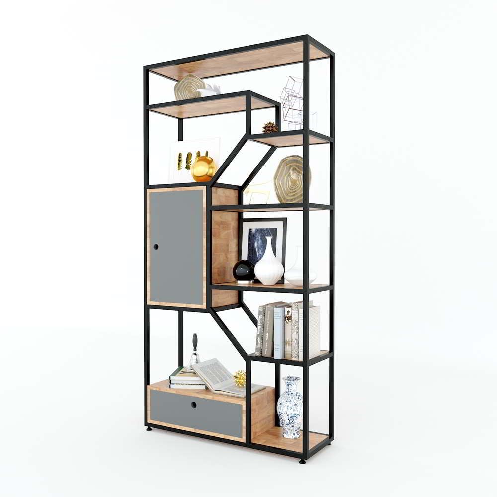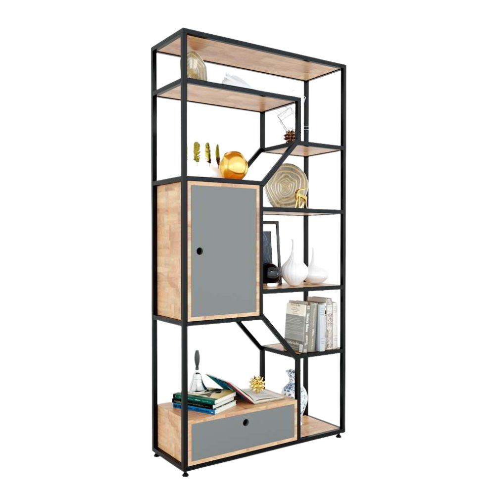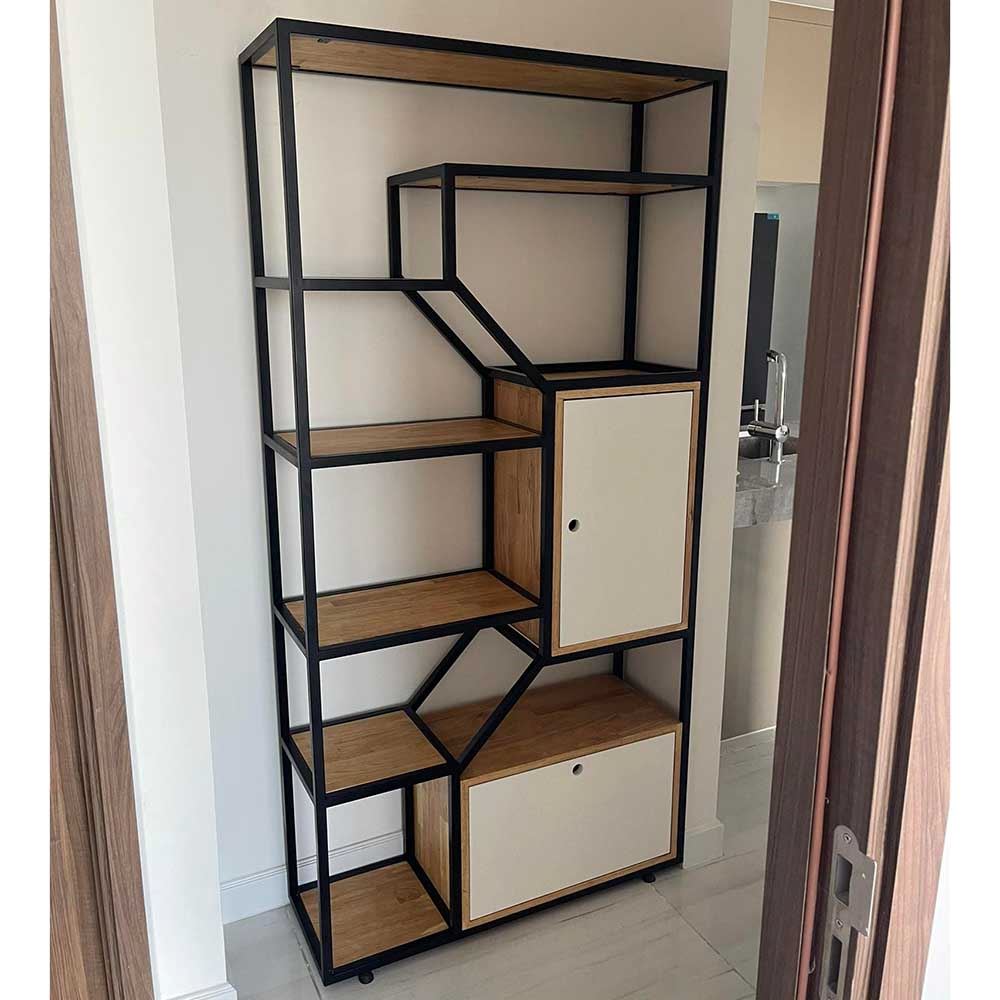 Kệ trang trí có tủ gỗ cao su khung sắt 90x30x180(cm) KTB68072 thuộc dòng sản phẩm kệ sách kiêm kệ trang trí với thiết kế tinh tế và lôi cuốn. Được kết hợp giữa hai chất liệu chủ đạo là gỗ và khung sắt, giúp bạn không phải tốn quá nhiều thời gian, công sức và chi phí để trang trí lại căn phòng của mình. Mẫu thiết kế là sự kết hợp giữa các tấm gỗ cao su dày 17mm và những khung sắt được sắp xếp với nhau một cách hài hòa và bắt mắt người nhìn. Mẫu thiết kế với kiểu dáng hiện đại dành cho phòng làm việc, phòng khách hay văn phòng có diện tích nhỏ để bạn có thể trang trí những khu vực đó một cách gọn gàng đẹp mắt và vô cùng tiện nghi.