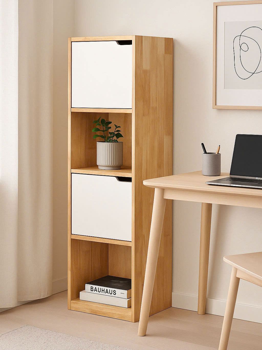 • Màu sắc: Gỗ có 4 màu tùy chọn, Cửa tủ màu trắng.