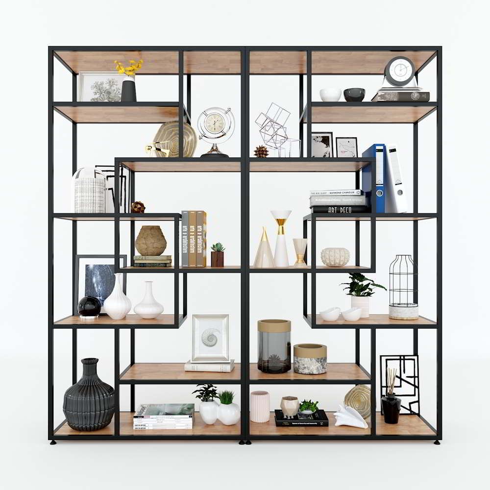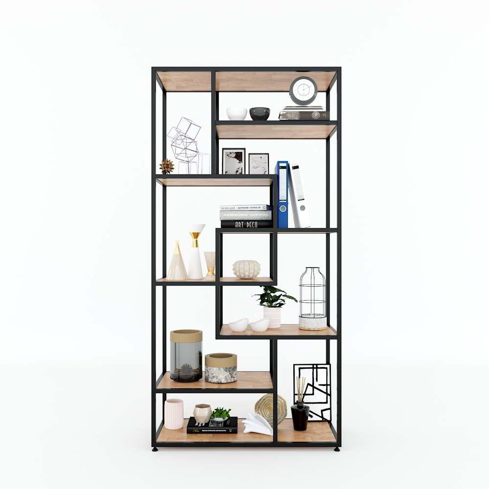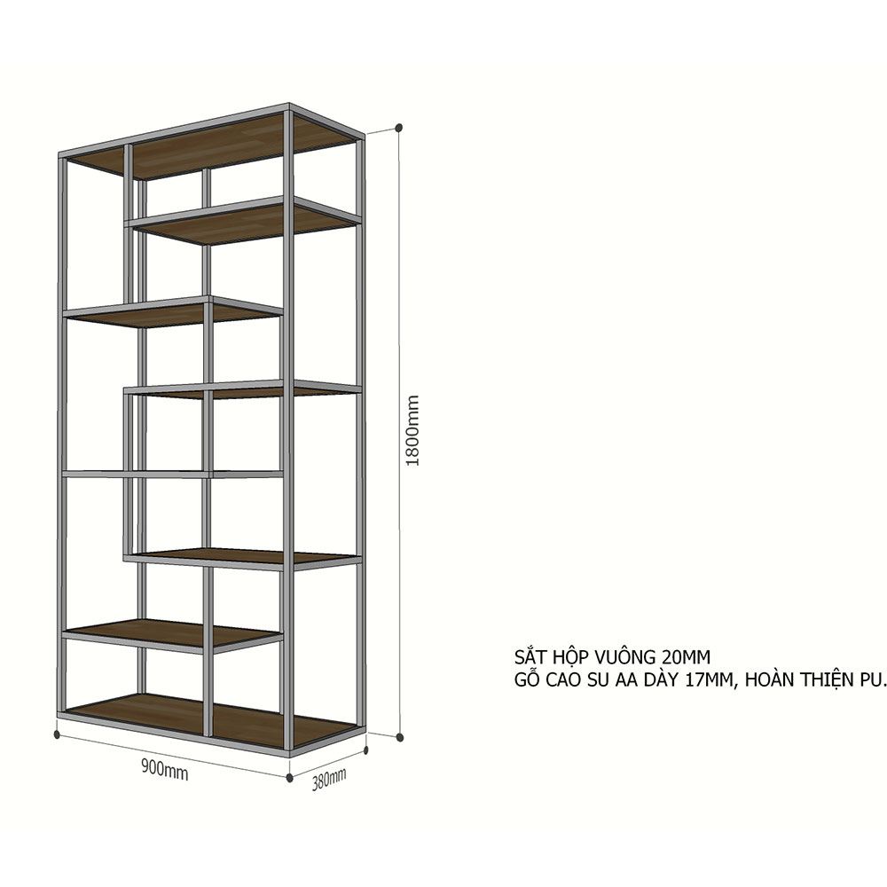 Kệ trang trí gỗ cao su khung sắt 90x38x180(cm) KTB68075 thuộc dòng sản phẩm kệ sách kiêm kệ trang trí với thiết kế tinh tế và lôi cuốn. Được kết hợp giữa hai chất liệu chủ đạo là gỗ và khung sắt, giúp bạn không phải tốn quá nhiều thời gian, công sức và chi phí để trang trí lại căn phòng của mình. Mẫu thiết kế là sự kết hợp giữa các tấm gỗ cao su dày 17mm và những khung sắt được sắp xếp với nhau một cách hài hòa và bắt mắt người nhìn. Mẫu thiết kế với kiểu dáng hiện đại dành cho phòng làm việc, phòng khách hay văn phòng có diện tích nhỏ để bạn có thể trang trí những khu vực đó một cách gọn gàng đẹp mắt và vô cùng tiện nghi.