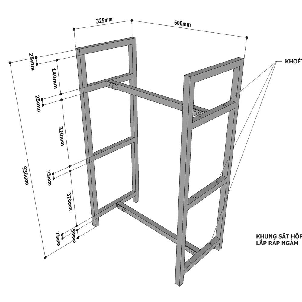 Kệ trang trí GONY 3 tầng gỗ kết hợp khung sắt KS68099