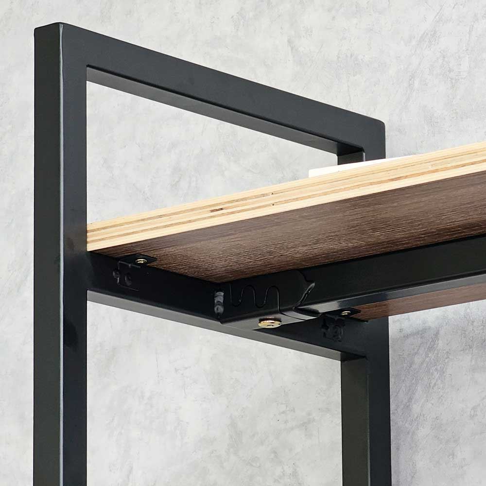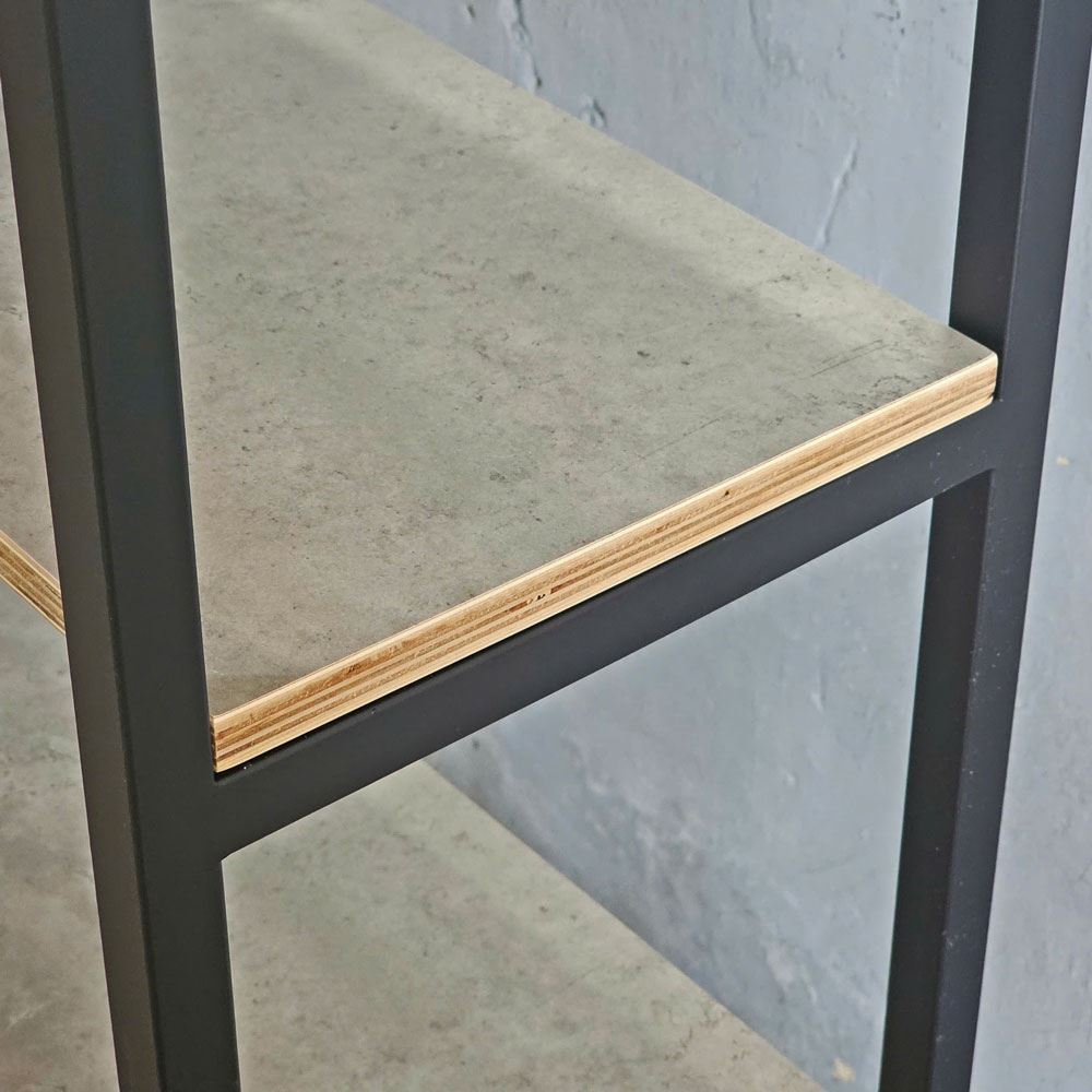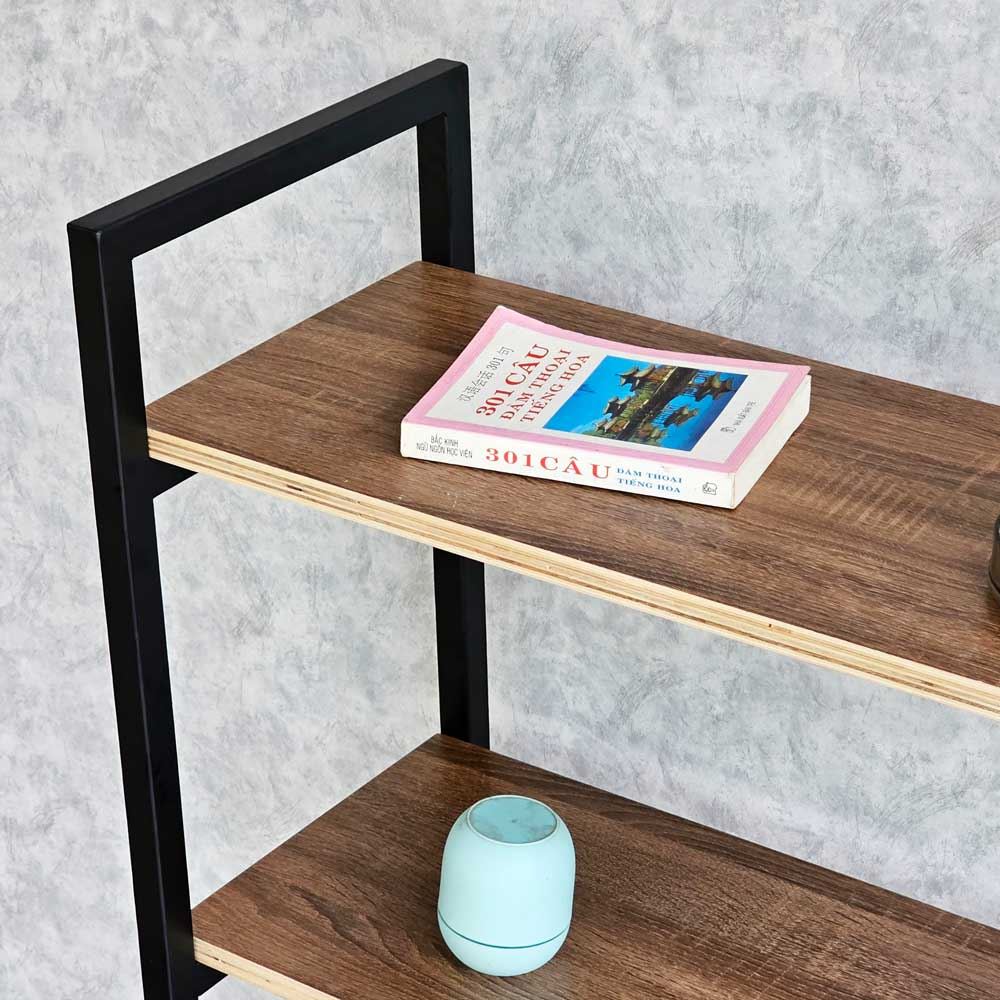 Kệ được sử dụng chất liệu ván gỗ plywood, bề mặt được phủ melamin chống trầy xước, đã được xử lý chống thấm nước, giúp gia tăng độ bền bỉ và vẻ đẹp cho ván. Plywood là một loại ván ép nổi tiếng với khả năng chịu được tải trọng lớn, không bị cong vênh như gỗ tự nhiên. Khung sắt hộp 25x25mm, loại dày 1,2 ly, được phủ sơn tĩnh điện chống gỉ sét, và giúp tăng tính thẩm mỹ của sản phẩm.