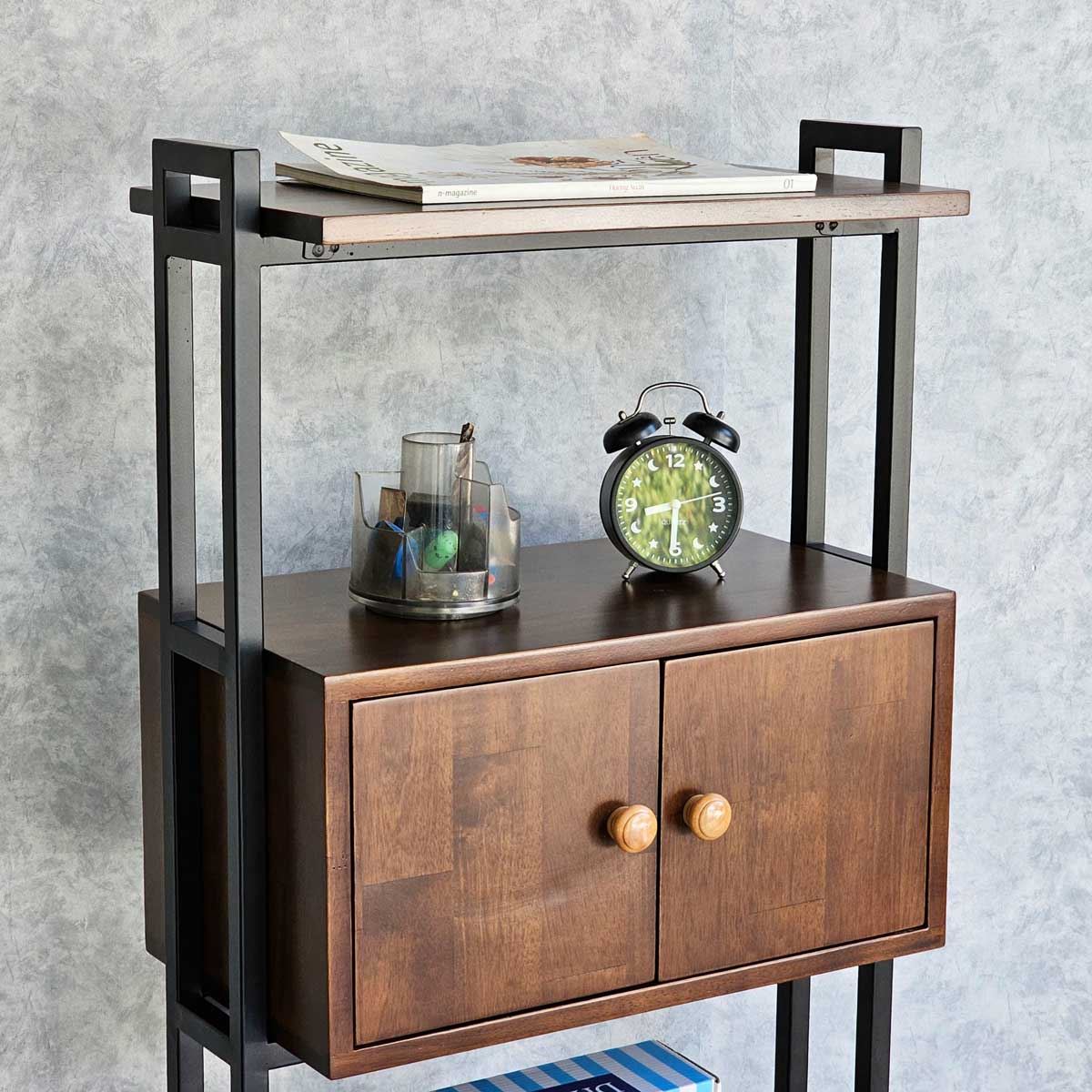 Kệ trang trí KTB68181 có kết cấu 3 tầng kệ mở giúp bạn có thể sử dụng để trưng bày nhiều loại đồ vật khác nhau như sách, tranh ảnh, đồ lưu niệm, cây cảnh, v.v. Hai ngăn tủ có cửa bên dưới cung cấp không gian lưu trữ kín đáo cho những vật dụng cá nhân hoặc những món đồ bạn muốn cất giữ. Điểm độc đáo của kệ nằm ở cách phân bổ các tầng kệ và ngăn tủ một cách sáng tạo. Hai ngăn tủ được bố trí lệch nhau, tạo điểm nhấn ấn tượng cho kệ và giúp bạn dễ dàng sắp xếp đồ đạc. Các tầng kệ được sắp xếp với độ cao thấp khác nhau, tạo nên sự bắt mắt và thu hút cho về mặt tổng quan.